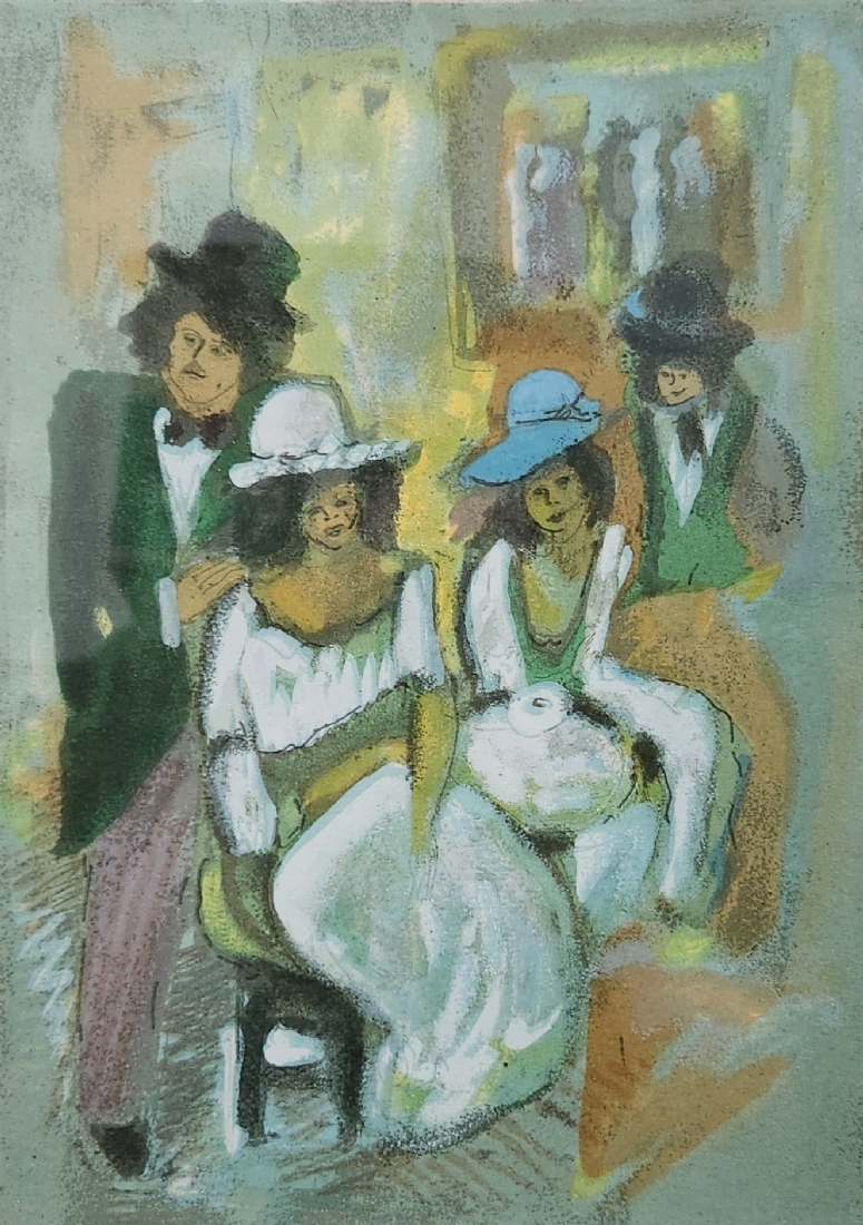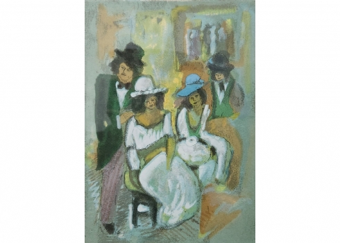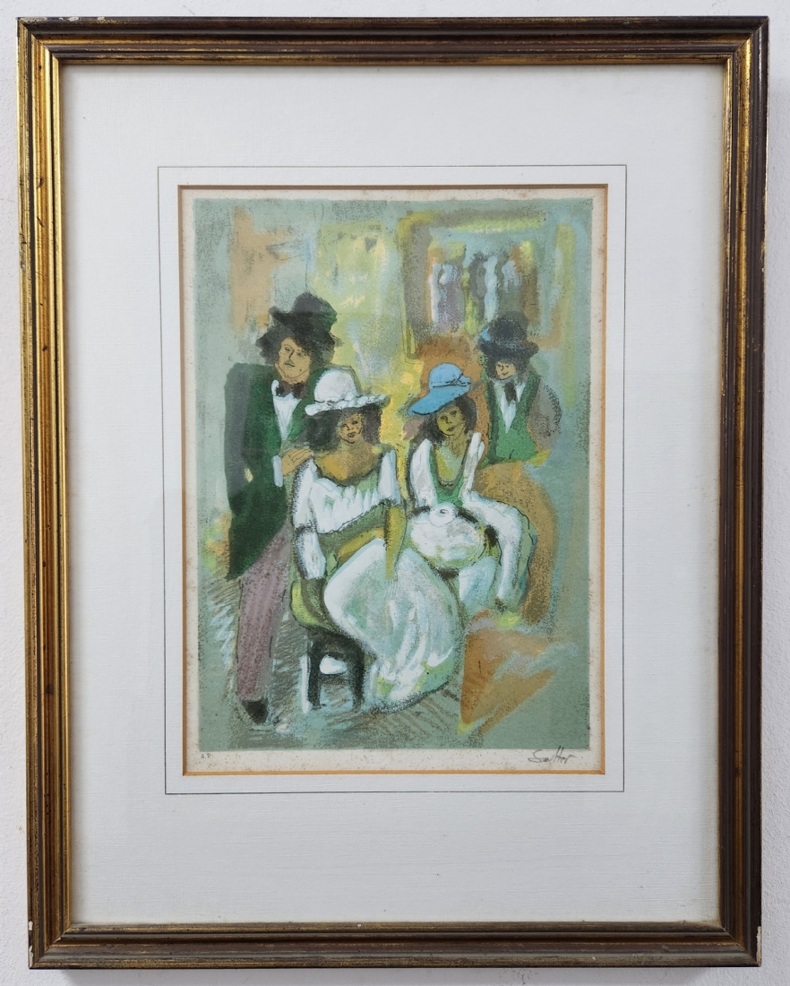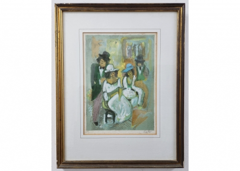 אלטר שלמה (Shlomo Alter) - 'נשים בלבן' - ליטוגרפיה חתומה בעיפרון, מידות: 34X24 ס"מ, מידות המסגרת: 53X42 ס"מ.