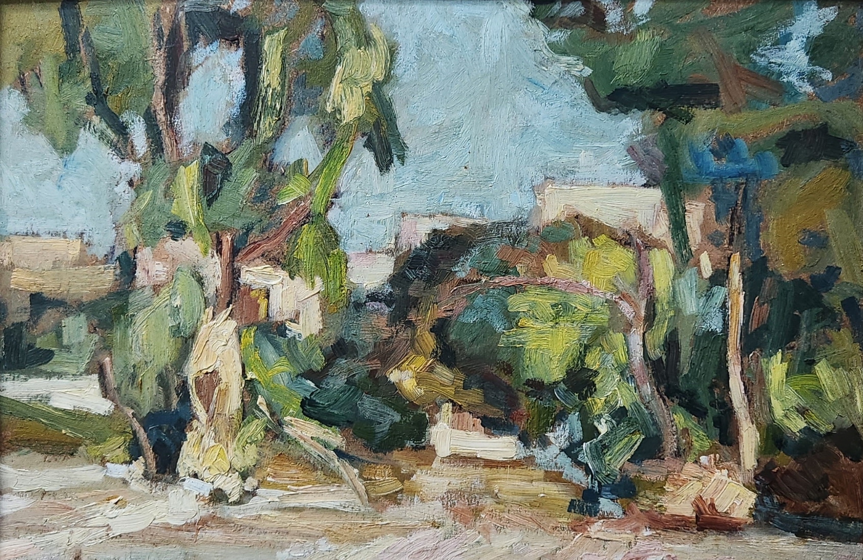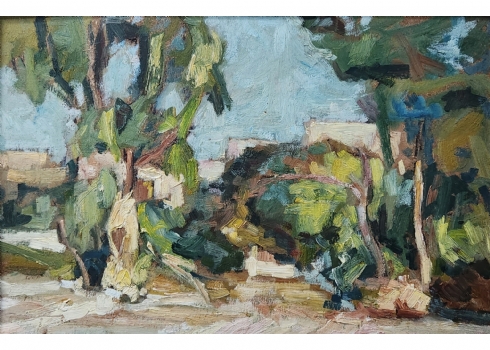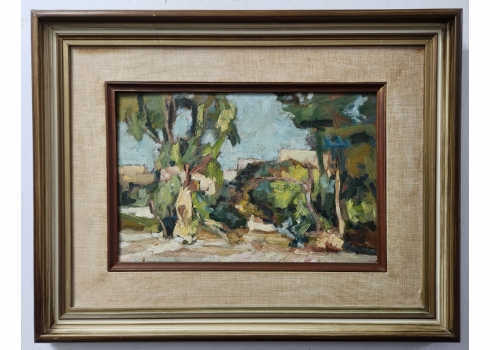 צבי שור (Zvi Shorr) - 'נוף פתח תקווה' - שמן על לוח, לא חתום, מידות: 26X40 ס"מ, 48X62 ס"מ.