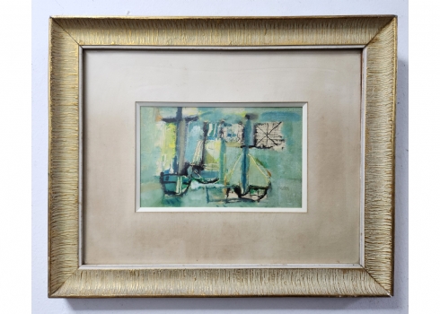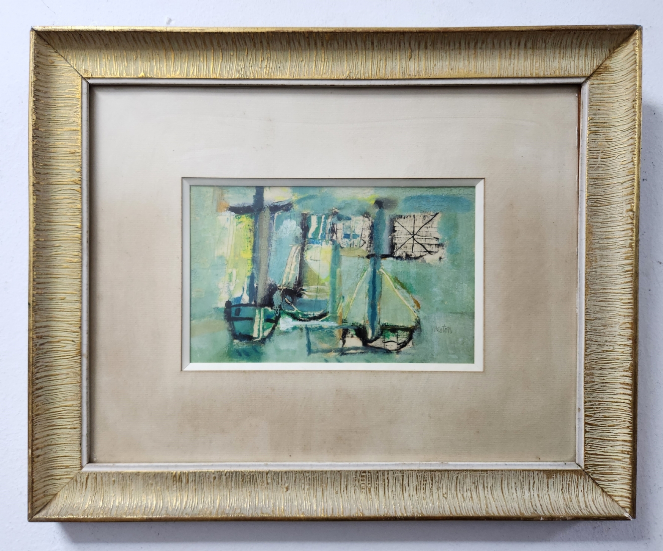רג'ינלד (רג'י) ווסטון - Reginald (Regie) Weston - 'סירות' - שמן על נייר, חתום, מידות: 13X20 ס"מ, מידות המסגרת: 32X40 ס"מ.