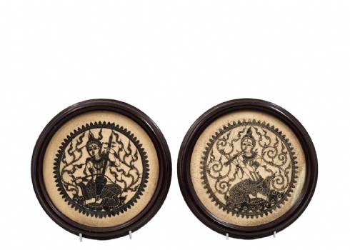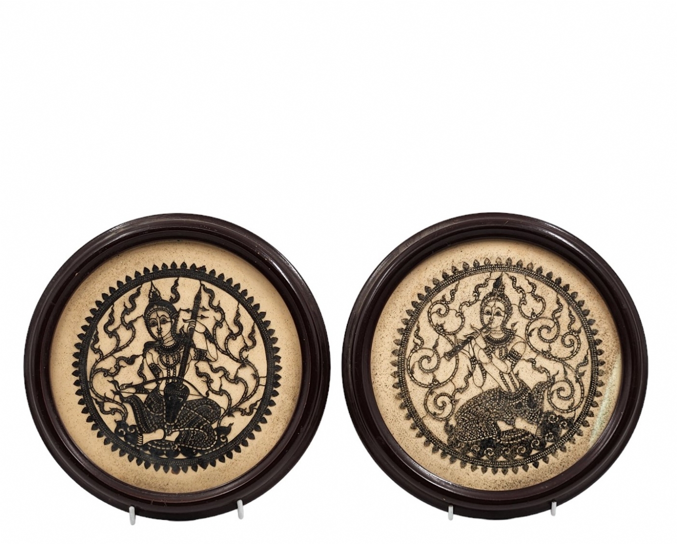לוט של שני מגזרות נייר תאילנדיות, ממוסגרות, קוטר המסגרת: 23.5 ס"מ.