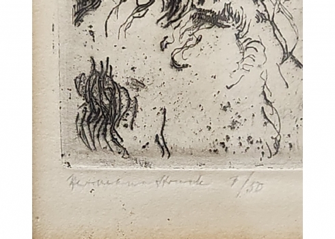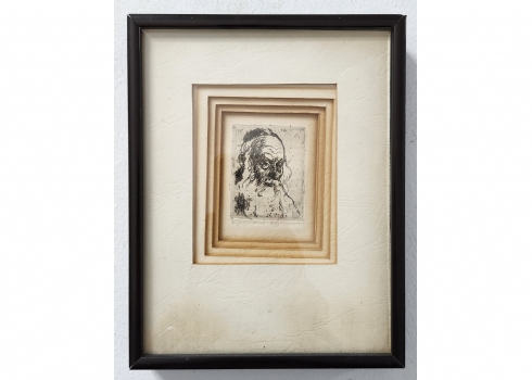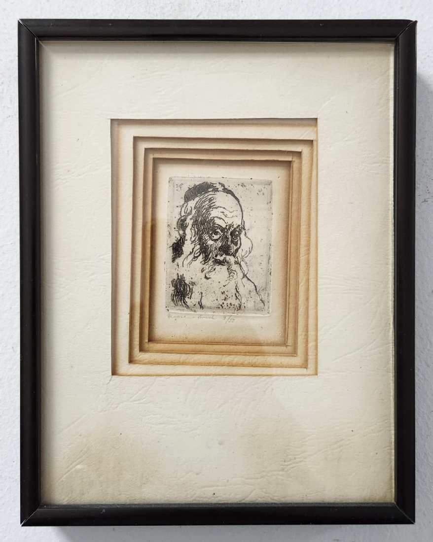הרמן שטרוק (Hermann Struck) - 'ראש יהודי זקן' - תצריב קטן, חתום בעיפרון וממוספר: 7/50, מידות: 8X6 ס"מ, מידות המסגרת: 21X16.5 ס"מ.