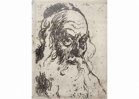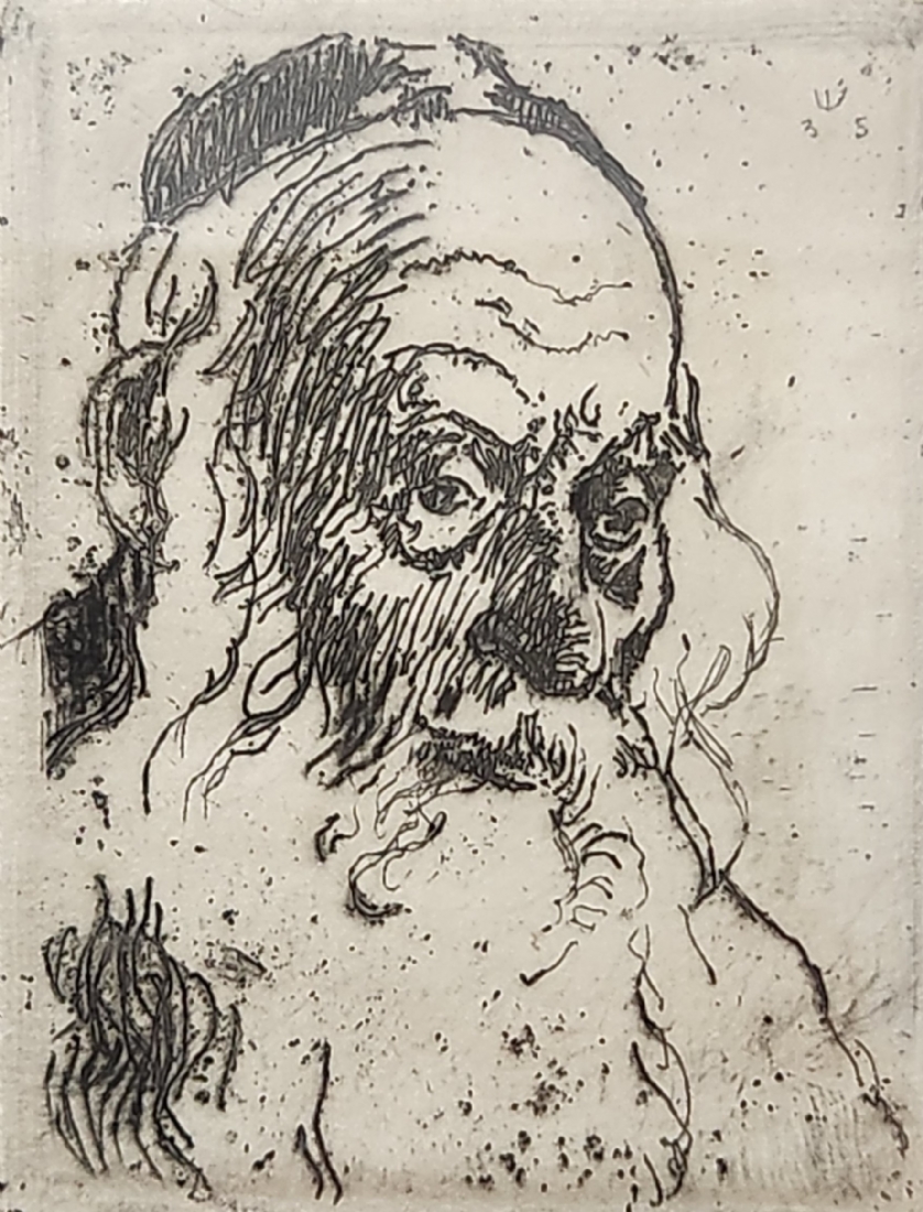 הרמן שטרוק (Hermann Struck) - 'ראש יהודי זקן' - תצריב קטן, חתום בעיפרון וממוספר
