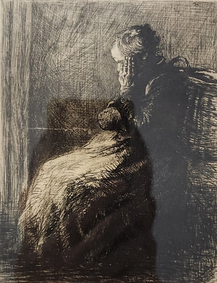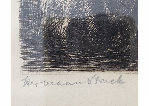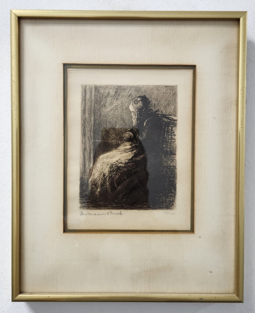 הרמן שטרוק (Hermann Struck) - 'אישה ליד סלי נצרים' - תצריב, חתום בעיפרון וממוספר
