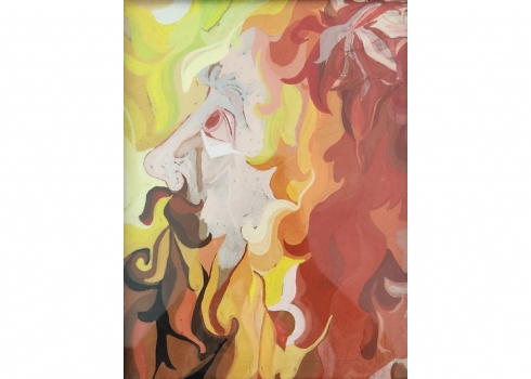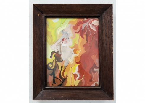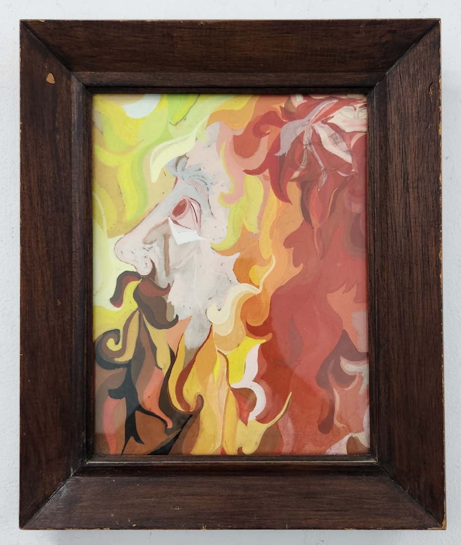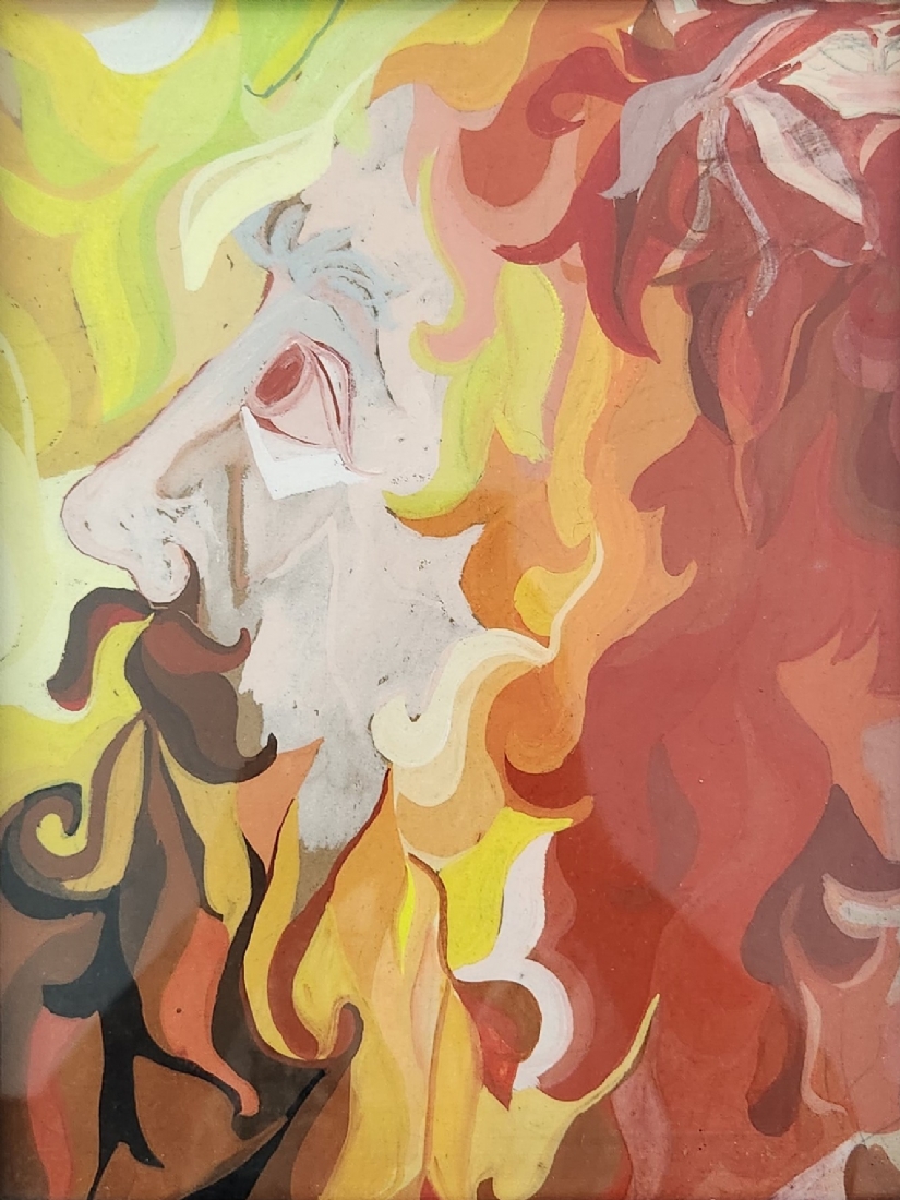 'שלהבות מתבדרות' - גואש על נייר, לא חתום, מידות: 32X24 ס"מ, מידות המסגרת: 43X36 ס"מ.
