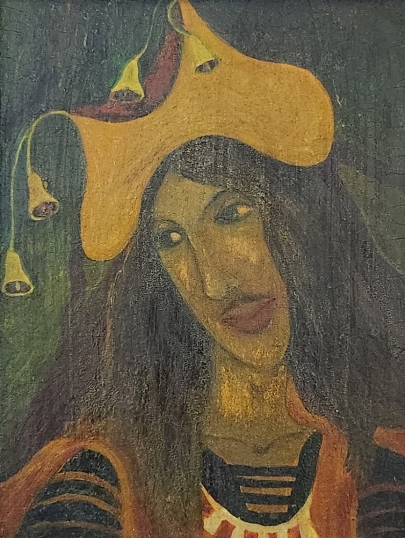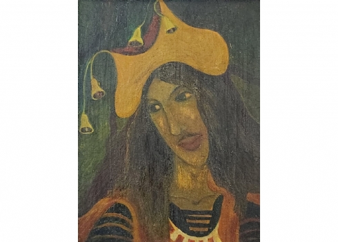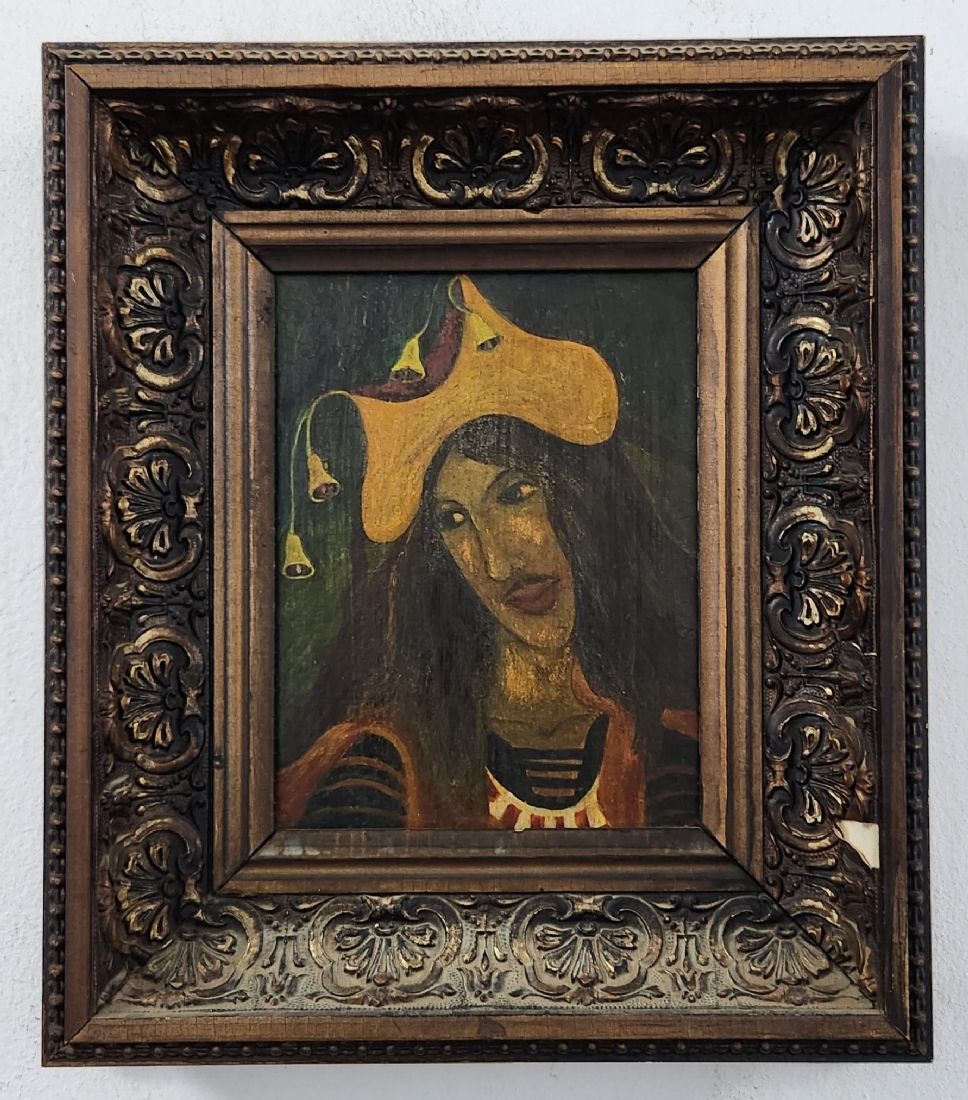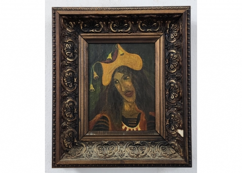 אולנה בורדאש (Olena Burdash) - 'יפיפייה משופמת', שמן על לוח, לא חתום, מידות: 18.5X14 ס"מ, מידות המסגרת: 32X27.5 ס"מ.