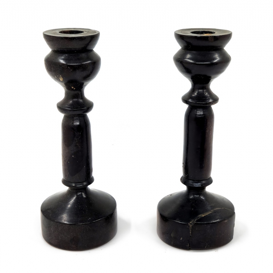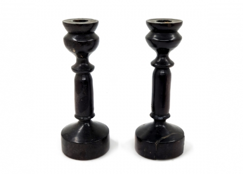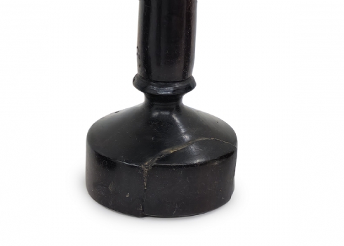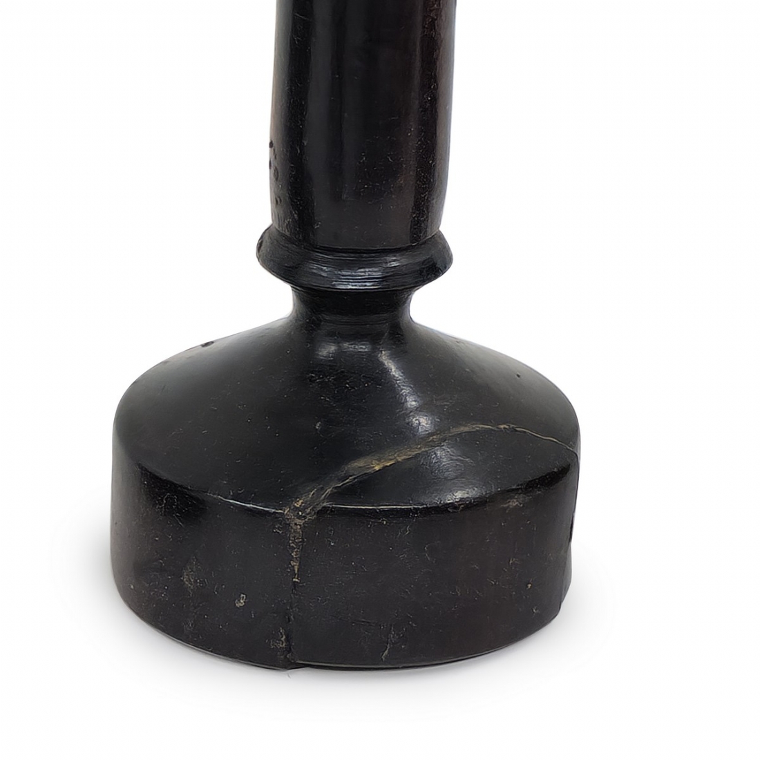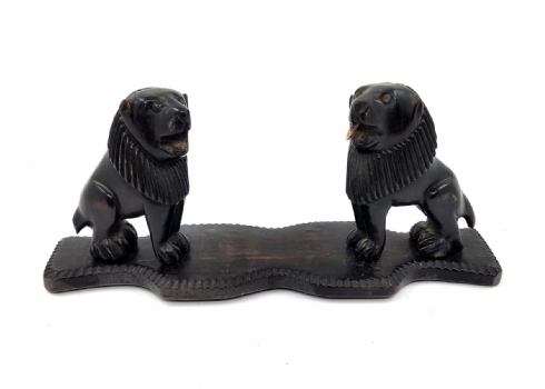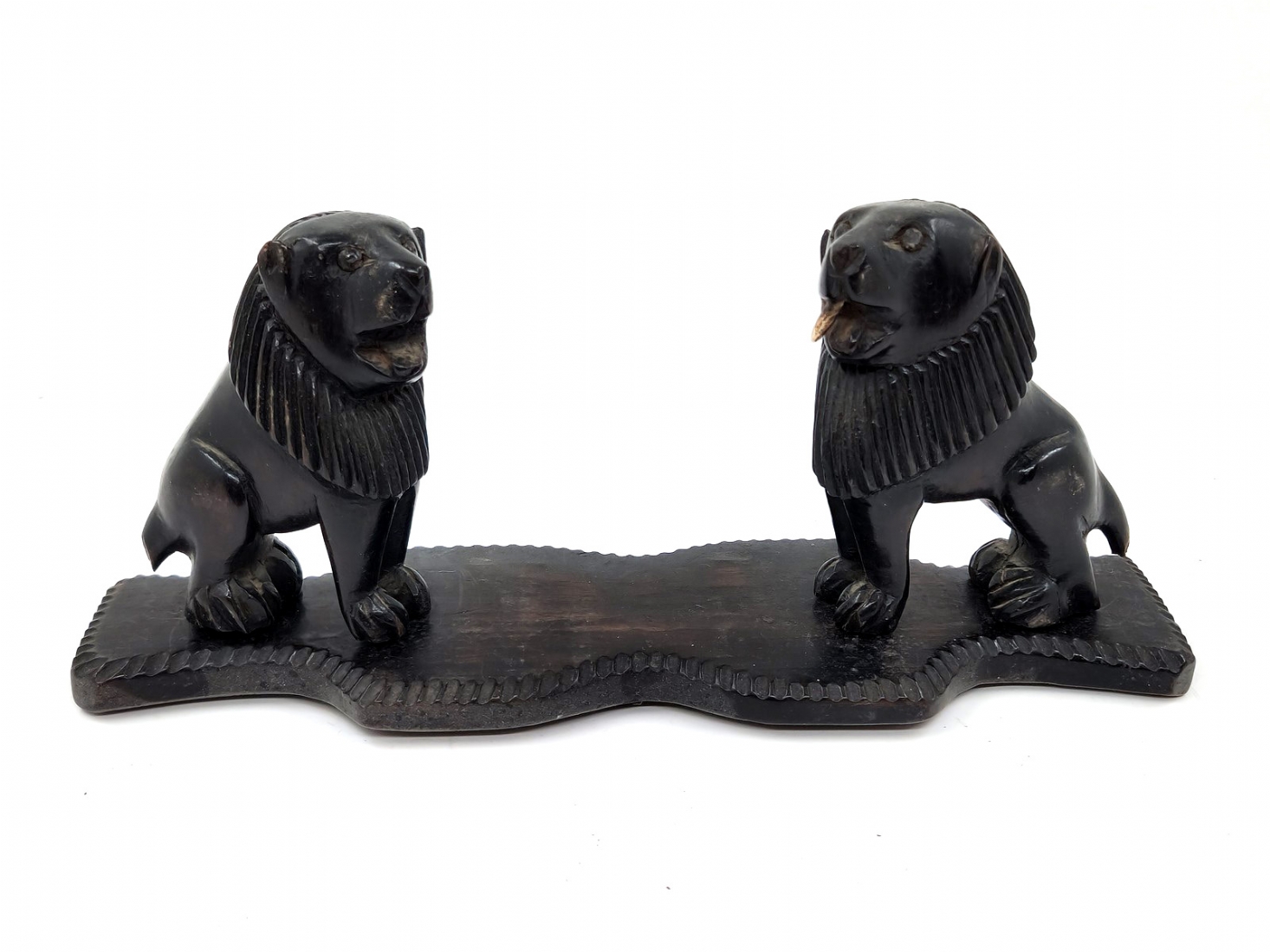 לוט של 10 פריטי נוי אפריקאים מעץ (תיקון ישן לפמוט וחסר בשרשרת הפילים), גובה הפמוט: 16 ס"מ, אורך שרשרת הפילים: 25.5 ס"מ.