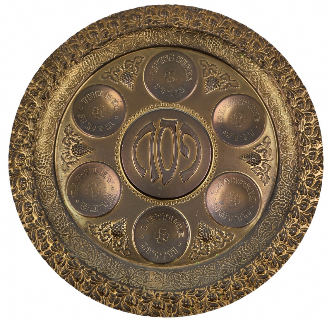 צלחת פסח ישנה, עשויה נחושת מרוקעת