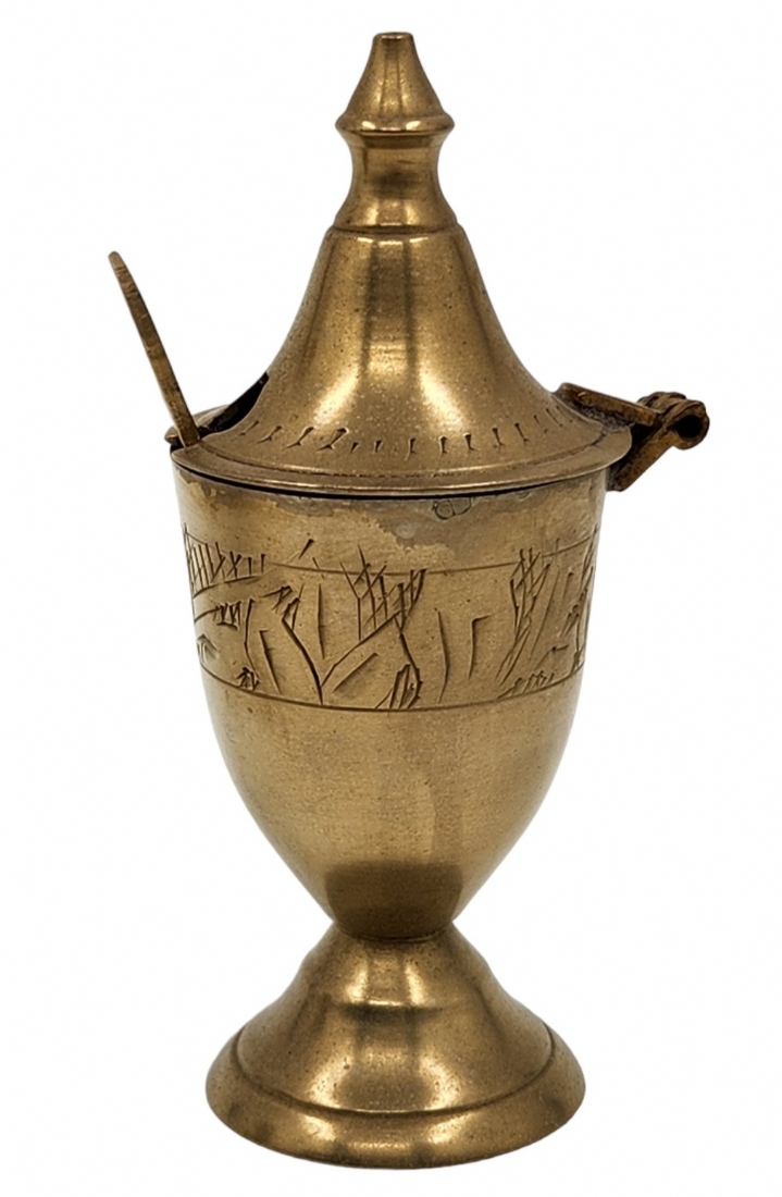 אפטבה פרסי עתיק מהמאה ה-19, עשוי נחושת, מעוטר ריקוע וחריטה בעבודת יד מעמד מטריות ישן ומרשים עשוי נחושת וידיות פליז מפוסלות קערת רחצה צרפתית עתיקה וגדולה כד חלב עתיק,עשוי מתכת, מצב בהתאם לגילו סט כלי הגשה אנגלי עתיק (ויקטוריאני) מפואר מסוף המאה ה-19 להגשת קפה ותה דקנטר גרמני ארט נובו עתיק, משנת 1900 בקירוב, מתוצרת: 'WMF' כלי אנגלי ישן לרוטב (רוטביה), מתוצרת: 'Walker & Hall', עשוי מתכת מצופה כסף, חתום כלי הגשה ומכסה תואם, עשויים מתכת מצופים כסף, חתום כלי הגשה וכיבוד מרובע, עשוי מתכת מצופה כסף, חתום כלי איסלאמי עתיק עשוי נחושת, שאריות ציפוי בדיל, חור לתליה על הקיר זוג כדים יפנים עתיקים (במקור היו בסיסים למנורות פראפין) עשויים מתכת מעוטרת אמייל קנקן איסלאמי עתיק מתקופת השושלת הקאג'ארית (Qajar dynasty, 1925-1794) מיחם (סמובר) אמריקאי ישן ואיכותי מתוצרת 'Reed & Barton', חתום, עשוי מתכת מוכספת מנורה בוהמית עתיקה עשויה זכוכית בת כמאה שנה זוג מנורות בוהמיות עתיקות עשויות זכוכית בנות כמאה שנה קופסא עתיקה מסוף המאה ה-19, עשויה מתכת  ומשובצת אבני חן טבעיות מיחם אנגלי עתיק (ויקטוריאני) מסוף המאה ה-19, עשוי פיוטר מצופה כסף וג כדים הינדו פרסיים עתיקים מהמאה ה-19 ומכסים תואמים פסל ברונזה על פי מודל מאת: 'Georges Van der Straeten' סט אנגלי עתיק (ויקטוריאני) להגשת דגים כלי מוכסף להגשה וכיבוד קנקן ארט דקו ישן לשתייה קרה קנקן מתוצרת: 'Mappin & Webb' כלי כיבוד ישן קסת דיו שולנית מתקופת ארט דקו כלי הגשה ישן, עשוי נחושת מצופה כסף כלי מוכסף ומעמד תואם מסננת עתיקה למטבח קסת דיו שולחנית כפולה סלסלה עתיקה עשויה פליז מצופה כסף