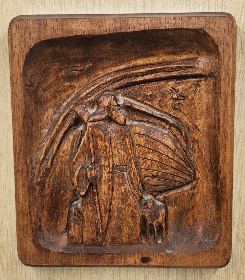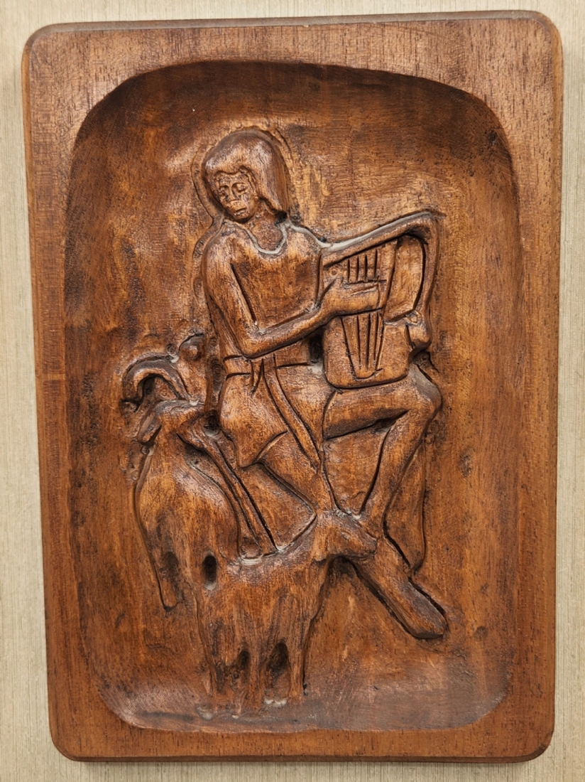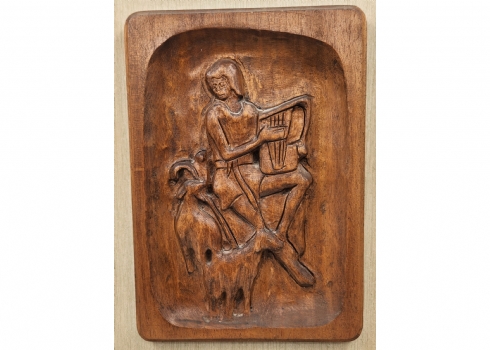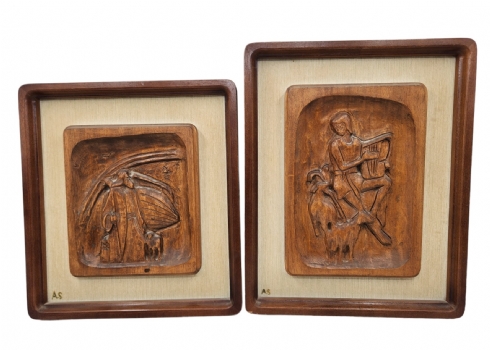 זוג תבליטי עץ מגולפים בעבודת יד אמן עם דמויות תנכ"יות