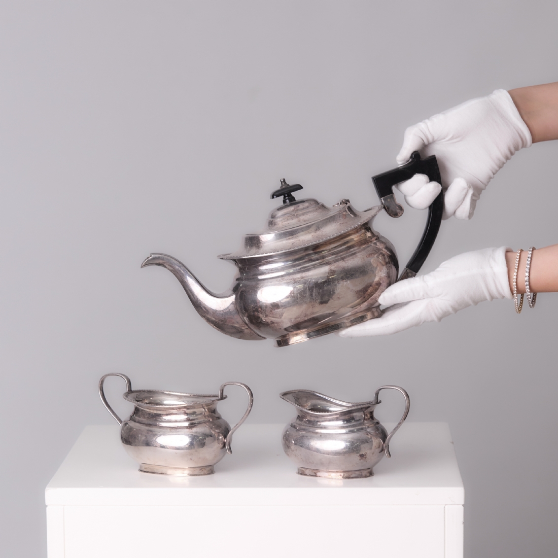 סט כלי הגשה אנגלי עתיק עשוי מתכת מצופה כסף מתוצרת: Garrard London & Company