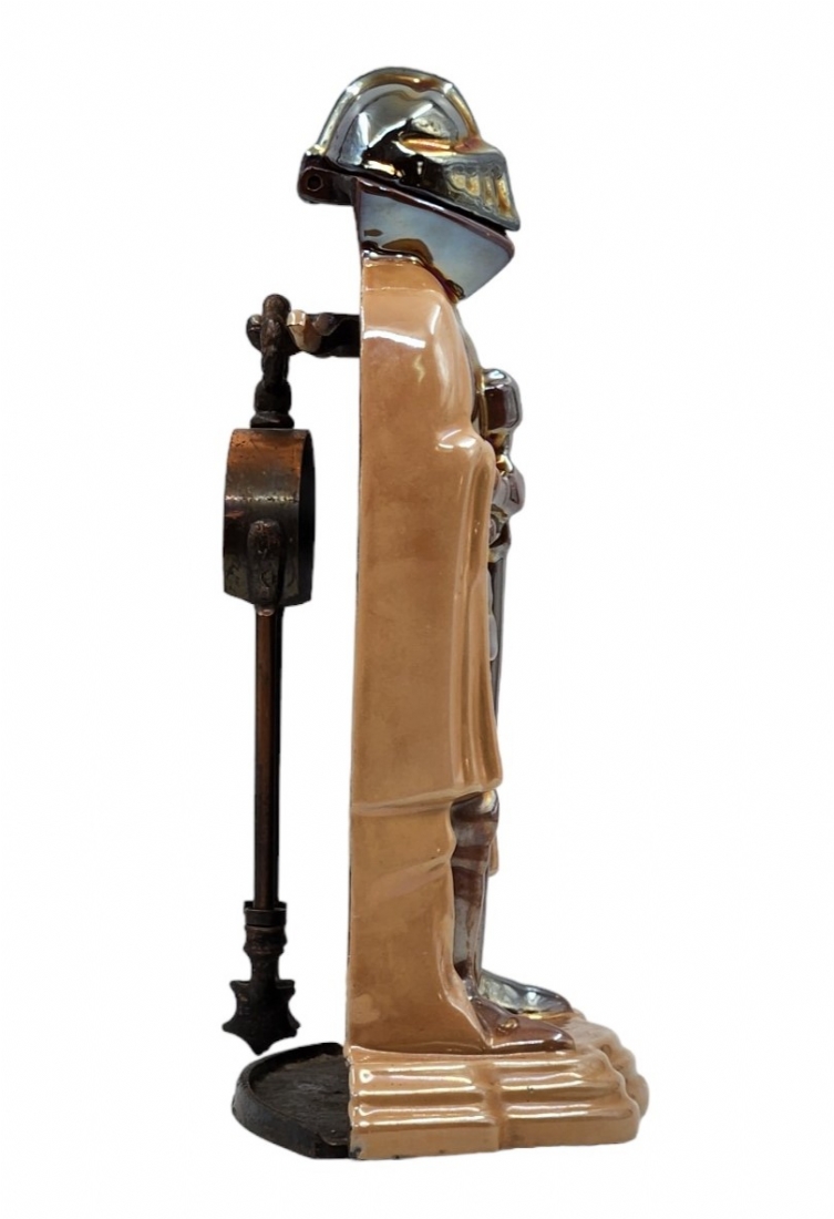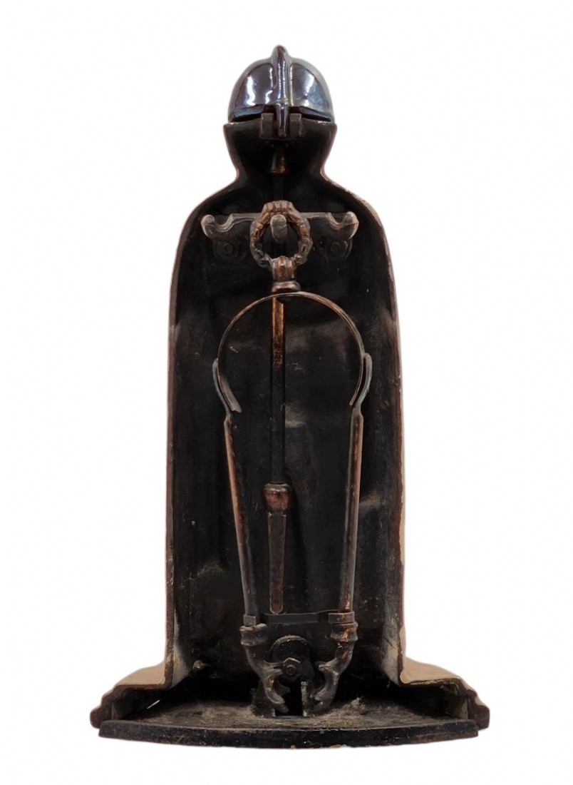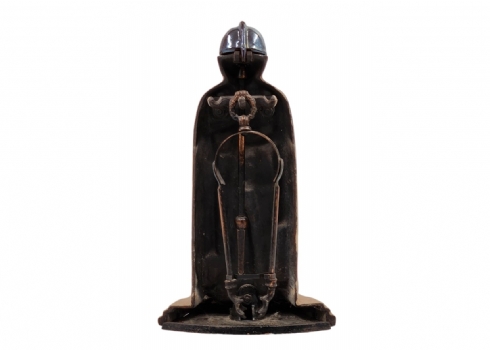 סט כלי אח עשויים ברזל יצוק, מעוצבים בדמות אביר בשריון אבירים, רוחב: 22 ס"מ, גובה: 37 ס"מ.