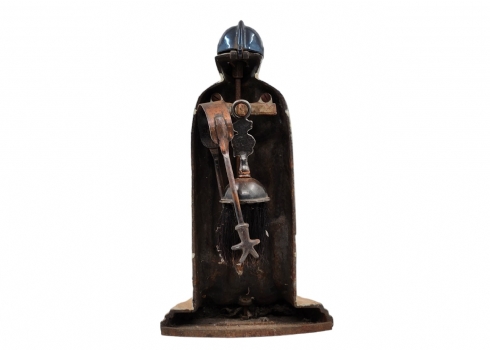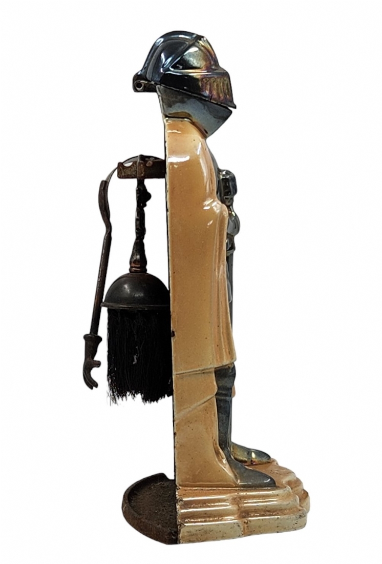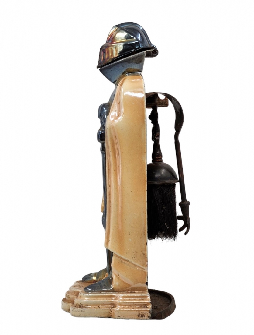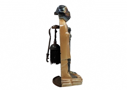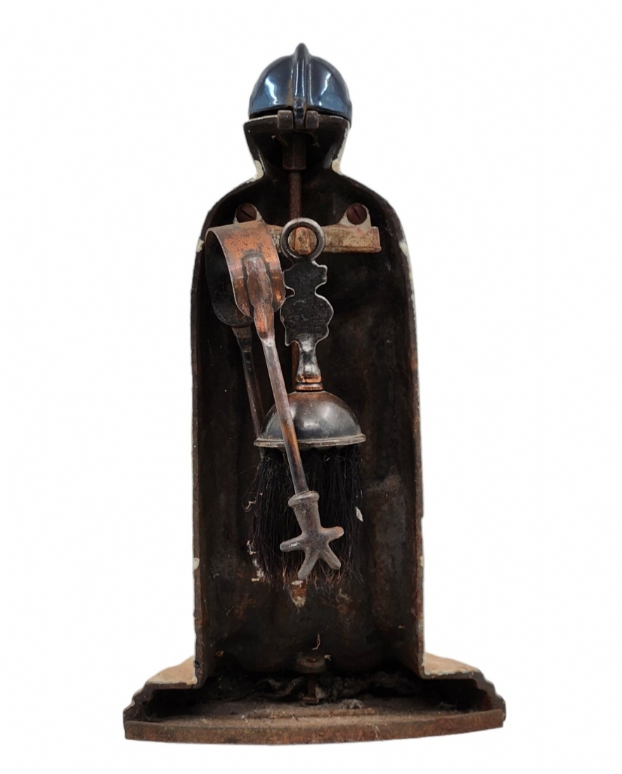 סט כלי אח עשויים ברזל יצוק, מעוצבים בדמות אביר בשריון אבירים, רוחב: 22 ס"מ, גובה: 37 ס"מ.