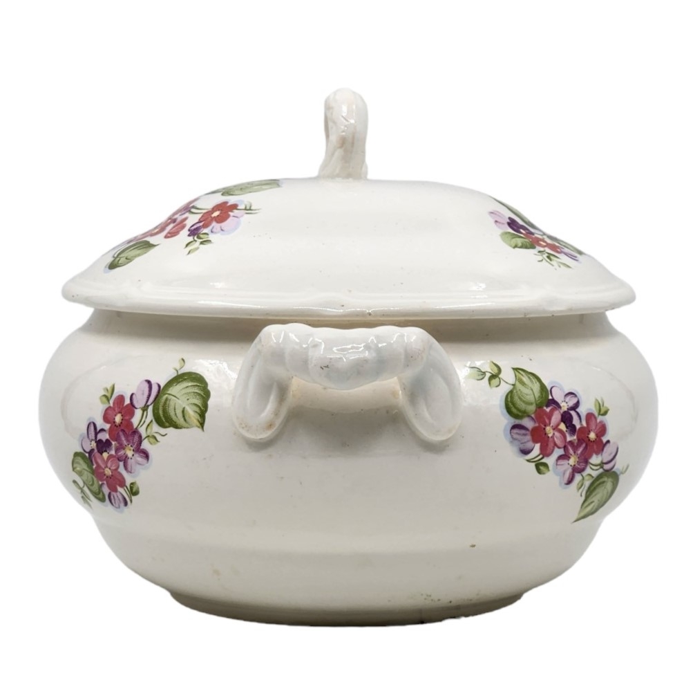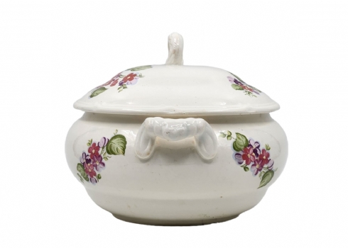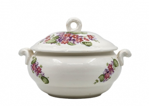 כלי חרס רוסי (סובייטי) ישן להגשת מרק (מרקייה) ומכסה תואם, מעוטר וחתום