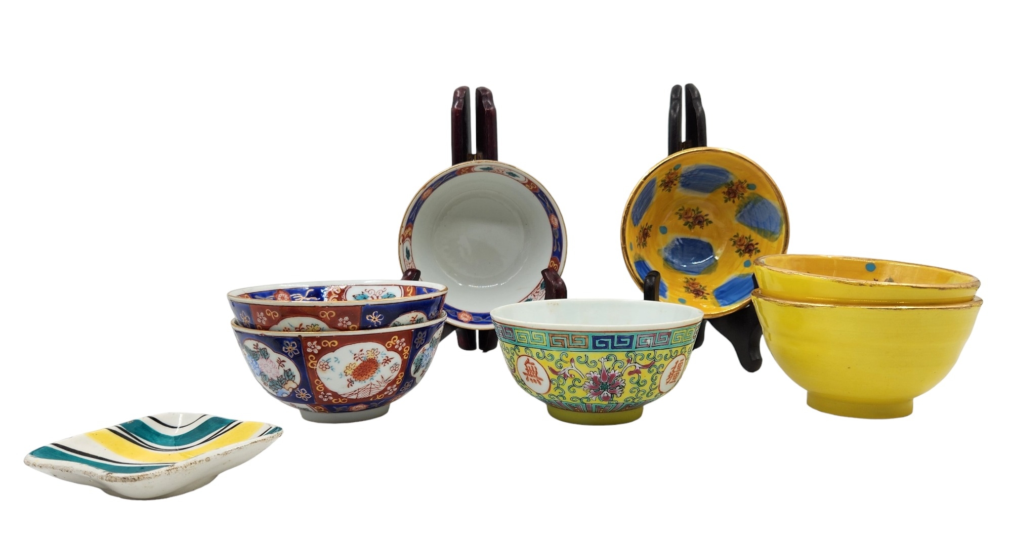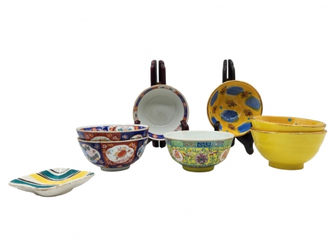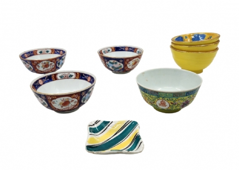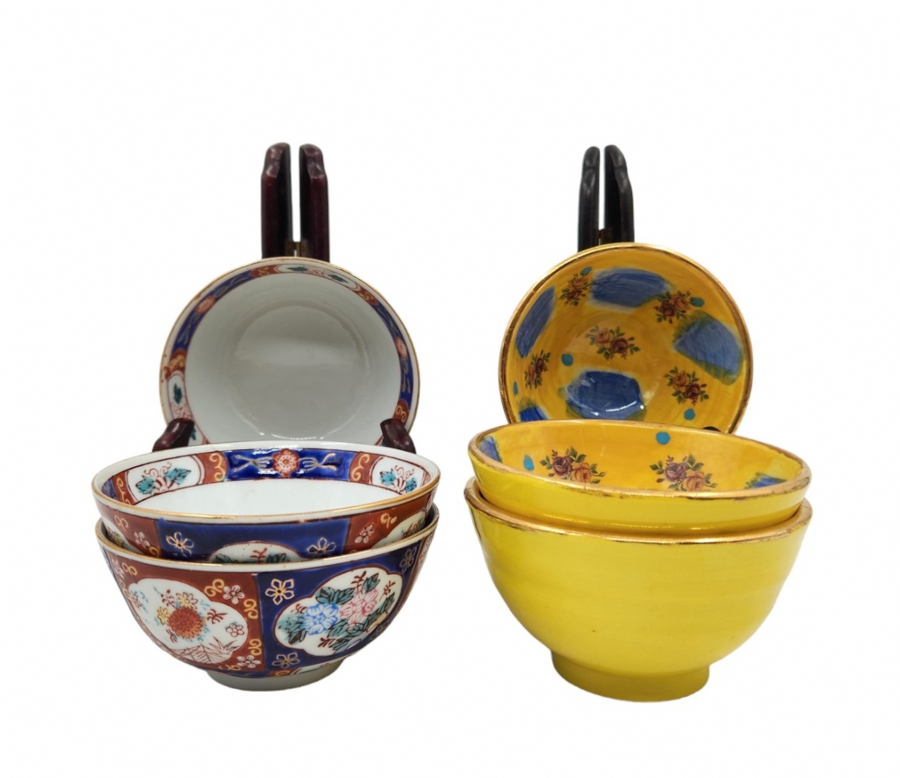 לוט של 8 קעריות ישנות ושונות, גובה הקערה הגדולה: 5.5 ס"מ, קוטר: 11.5 ס"מ, מידות הקערה הקטנה: 7.5X7.5 ס"מ.