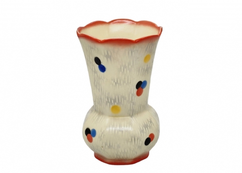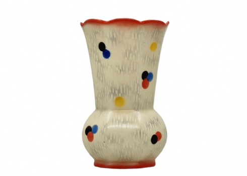 פריט נדיר, כד אר-דקו צ'כי, מתוצרת 'רינדאו' (Rindenau), מעוטר באמייל וחתום, גובה: 15.5 ס"מ, קוטר מפתח: 9.5 ס"מ.