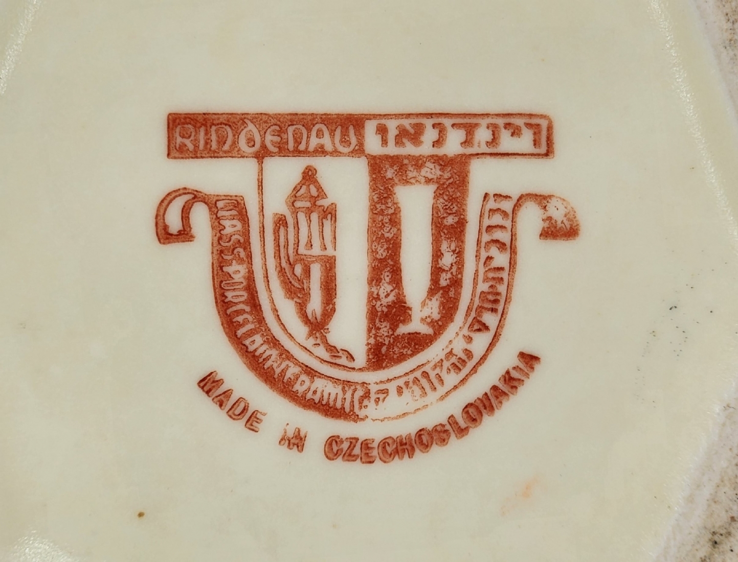 *רינדנאו (Rindenau) - משה רינדנאו היה סוחר קרמיקה פולני יהודי מתחילת המאה העשרים, בין השאר מכר תוצרת של מספר יצרנים שיצרו במיוחד עבורו או שחתמו את שמו על הכלים שלהם כדוגמת חברת: 'Gustav Bihl Czechoslavakia', הוא היגר מפולין לאוסטריה, ומכר בחנות בוינה, ברובע העשירי, לפני עליית המשפחה לארץ ישראל בשנת 1933, אשתו שהייתה ילידת צ'כיה עבדה גם באותה חנות. לימים פתח חנות ברחוב אלנבי 81 בתל אביב (החנות נפתחה כנראה בשנת: 1933 או 1934). (*בצילום החנות ברחוב אלנבי 81 בתל אביב של משה רינדינאו Rindenau) *הצילום של הצלחת לעוגה באדיבותו הרבה של מר דוד בן עמי. *הצילום של הצלחת בעלת שתי הידיות באדיבותה הרבה של הגב' תמי טליסמן. * מפעל הקרמיקה 'ביאל' (BIHL pottery factory) שהוקם על ידי גוסטאב ביאל (Gustav Bihl) פעל בעיר 'לדויס' (Ledvice) נקראת בגרמנית 'לאדוביץ'' (Ladowitz), בצפון מערב צ'כיה של היום בין השנים 1896 ועד לשנת 1939 (תודה מיוחדת לגב' ספי גרשוני נכדתו של מר משה רינדנאו ז"ל על המידע החשוב ועל הצילומים מתוך האלבום המשפחתי) נשמח לקבל כל פיסת מידע נוספת על סוחר / חנות זו. (מתוך האגוזיפדיה).