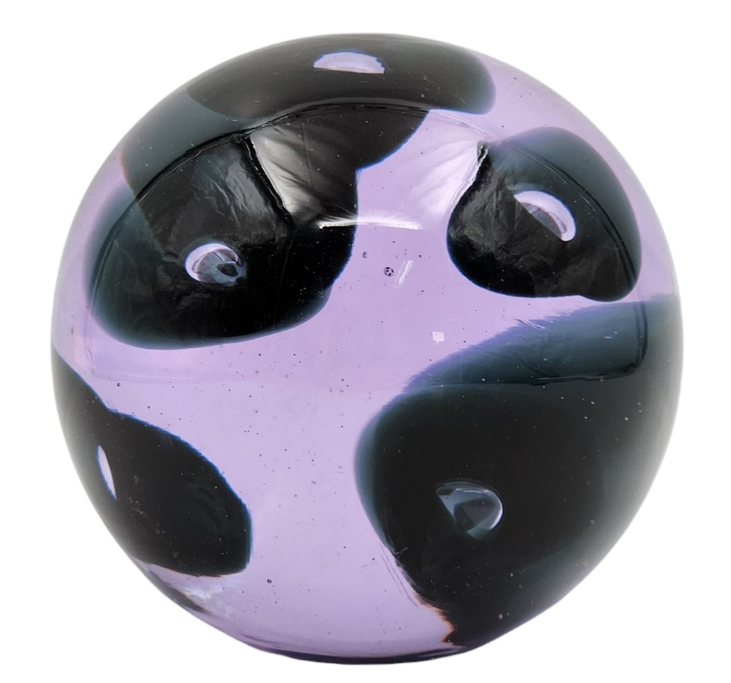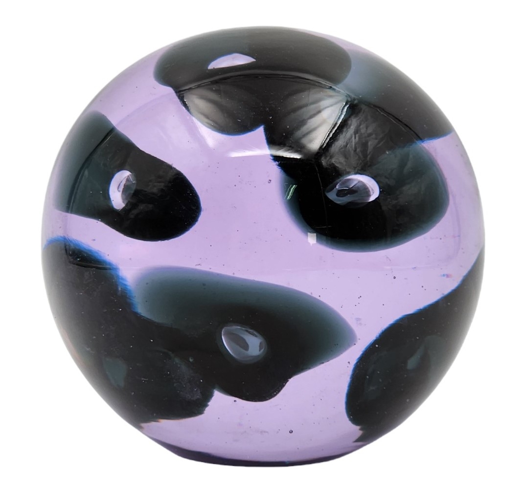 משקולת נייר, גדולה וכבדה מאד (מאד!), מעוטרת בעבודת בוליסנטה (Bullicante glass), גובה: 11 ס"מ, קוטר: 12 ס"מ.