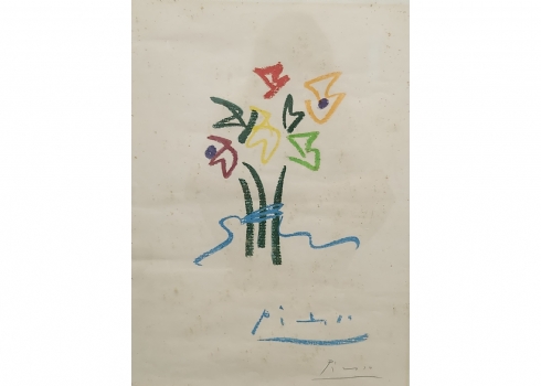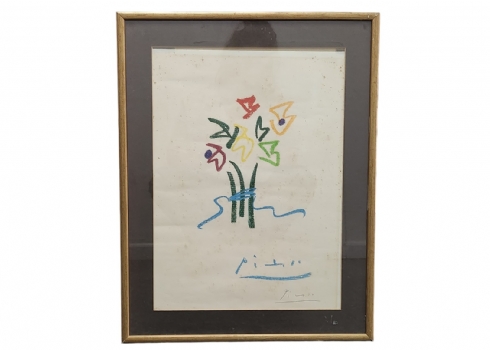 פבלו פיקאסו - ליטוגרפיה, חתומה בפלטה, מידות: 48X34.5 ס"מ, מידות המסגרת: 60X47 ס"מ.