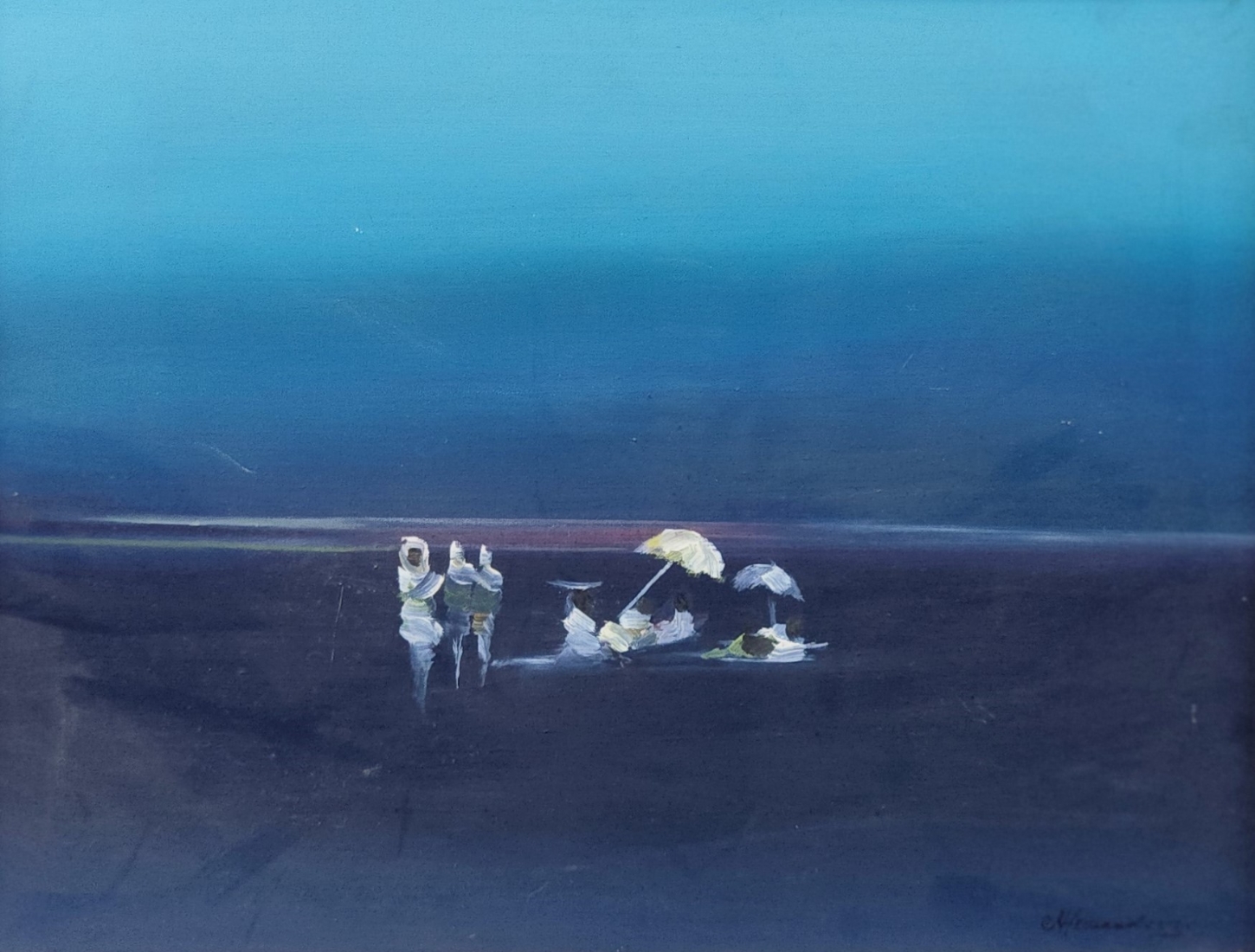 'שקט בכחול' - ציור ישן, שמן על בד