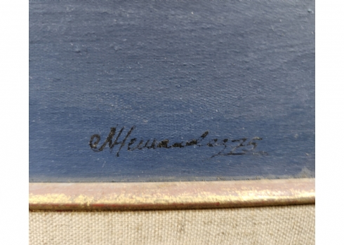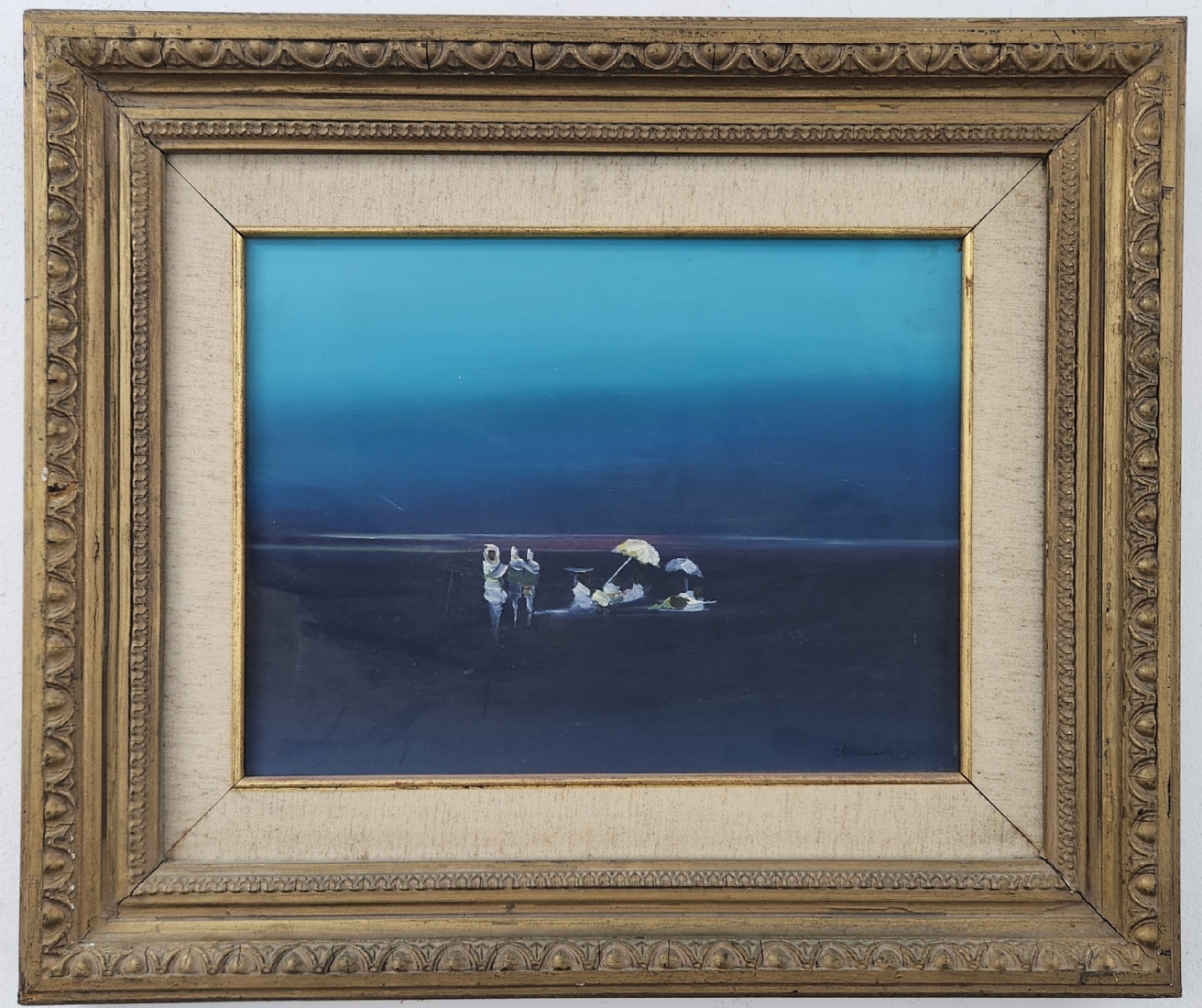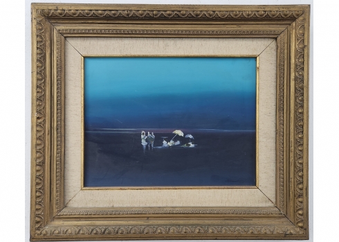'שקט בכחול' - ציור ישן, שמן על בד, חתום, מידות: 29X38.5 ס"מ, מידות המסגרת: 52.5X61.5 ס"מ.