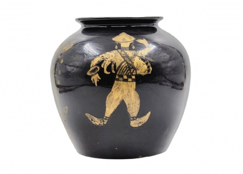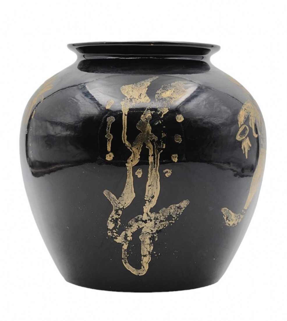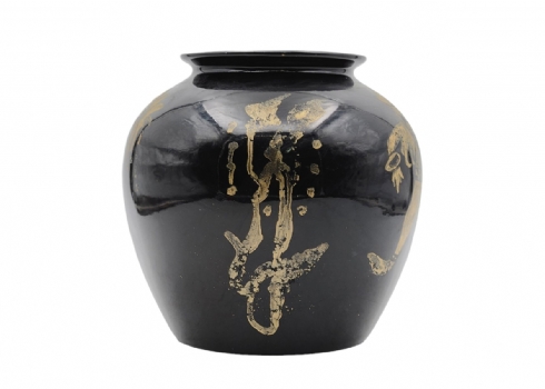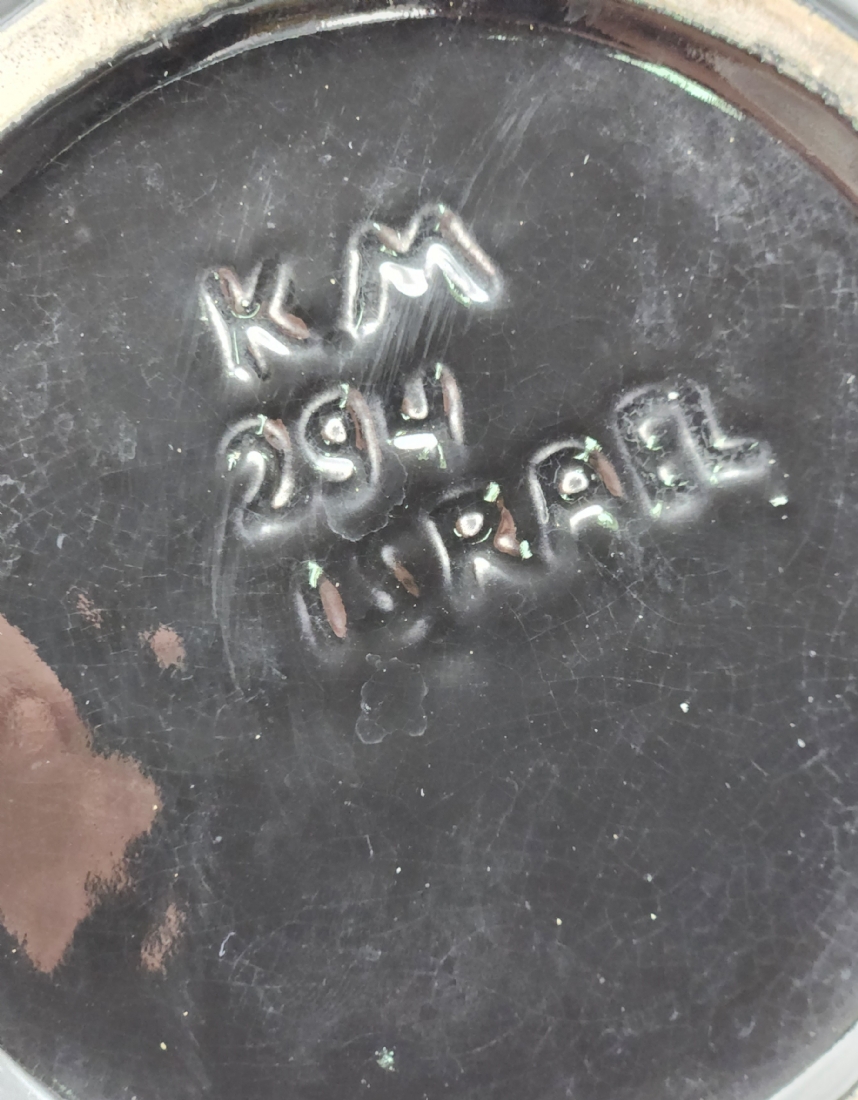 כד קרמיקה ישראלי מתוצרת כפר מנחם, מעוטר וחתום, יתכן והעיטור מאוחר, קוטר: 20 ס"מ, גובה: 19 ס"מ.