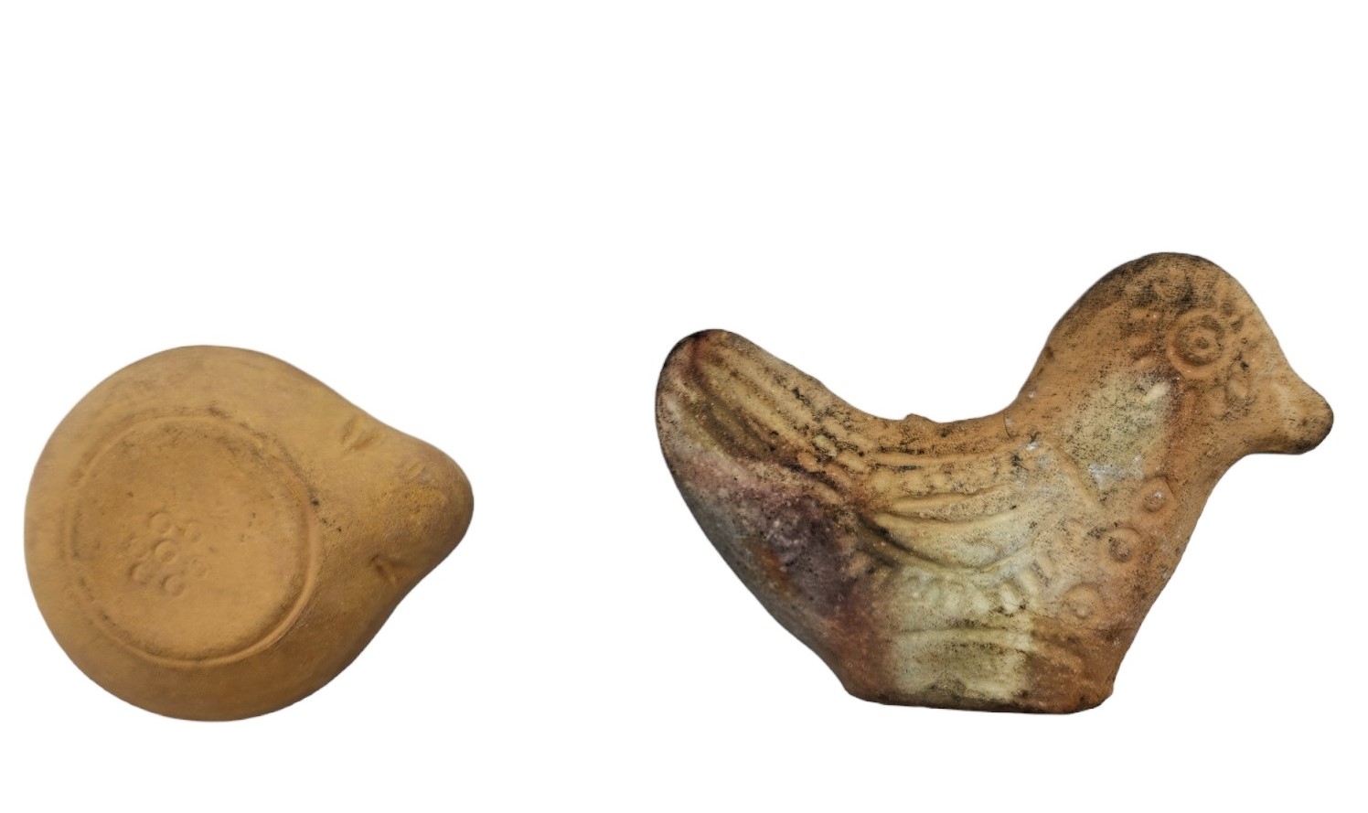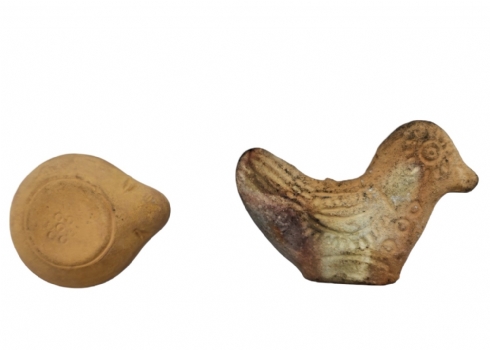 לוט של 5 חפצי נוי עשויים חרס, יצרנים ודגמים שונים, הכד מעוטר עיטורי כסף 'סטרלינג', נושא תווית יצרן מנייר, גובה הכד: 13 ס"מ, רוחב הציפור חרס: 13 ס"מ.