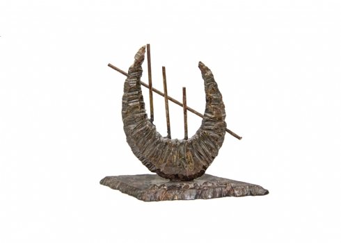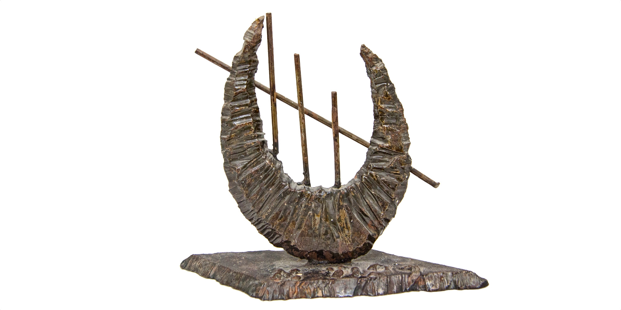 קישוט שולחני עשוי ברזל, בצורת כינור דוד, חתום, גובה: 19 ס"מ.