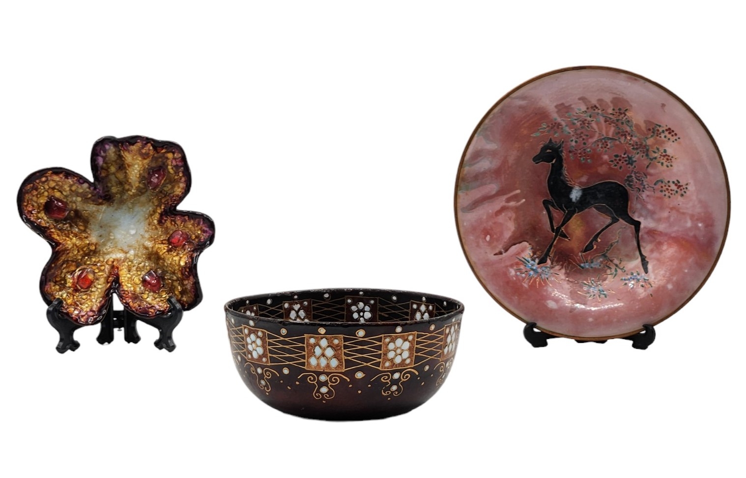 לוט של 3 כלי אמייל דקורטיביים שונים