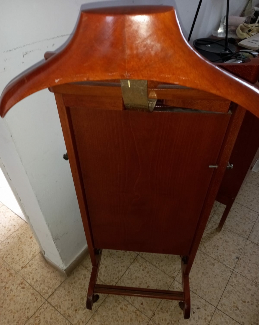 מתלה/קולב לבגדים עשוי עץ, גובה: 110 ס"מ, רוחב: 40 ס"מ, עומק: 35 ס"מ. (איסוף ממחסן ברחובות בתיאום מראש ולאחר הסדרת תשלום מול בית המכירות).