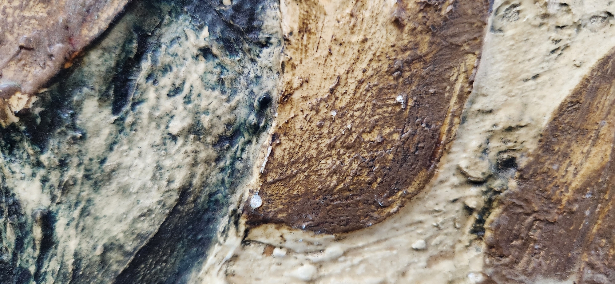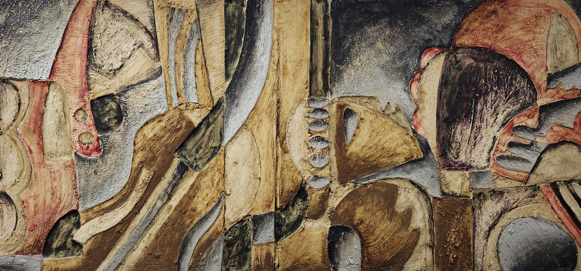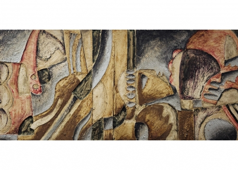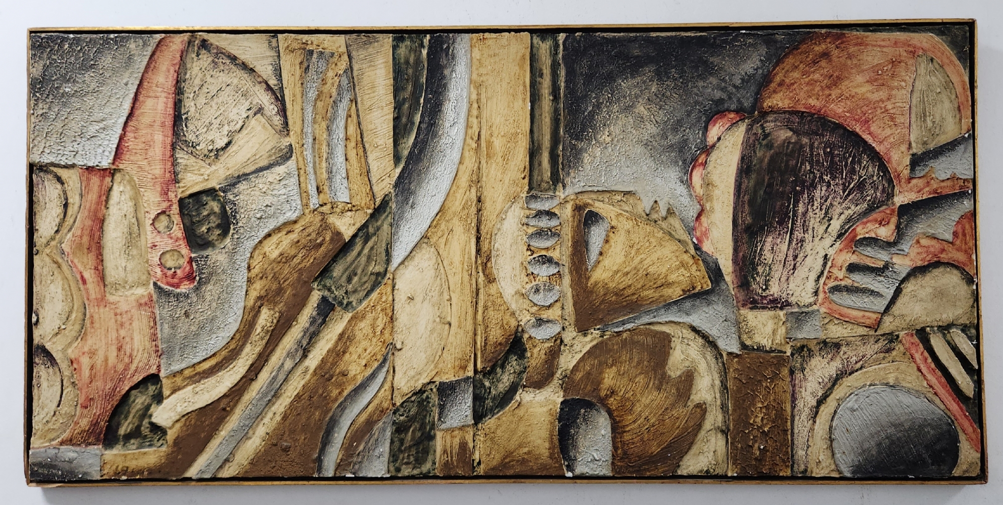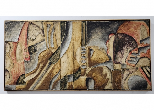 'קינת דוד' - תבליט ישראלי ישן ויפה, טכניקה מעורבת על לוח, חתום בחתימה לא מפוענחת (באמת? זו כזו בקשה גדולה שאמנים יחתמו בצורה ברורה וקריאה על היצירות שלכם?), מספר קילופי צבע קטנים ממש, או יותר נכון שיפשופים לצבע (מצולמים), מתוארך: 157X120 ס"מ, מידות המסגרת: 60X122 ס"מ.