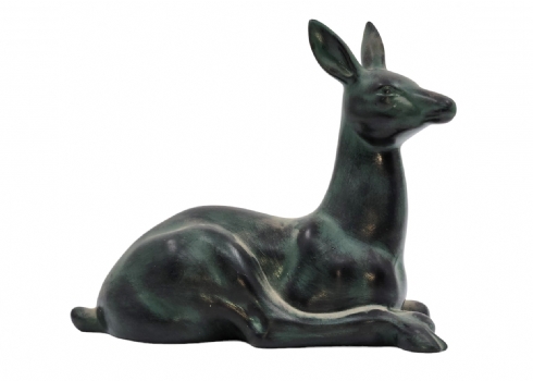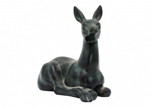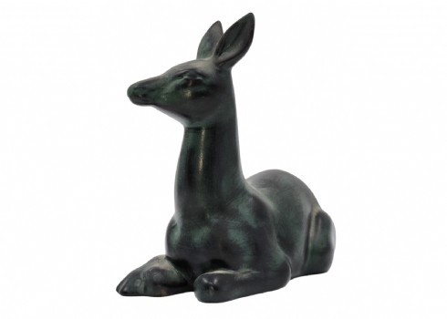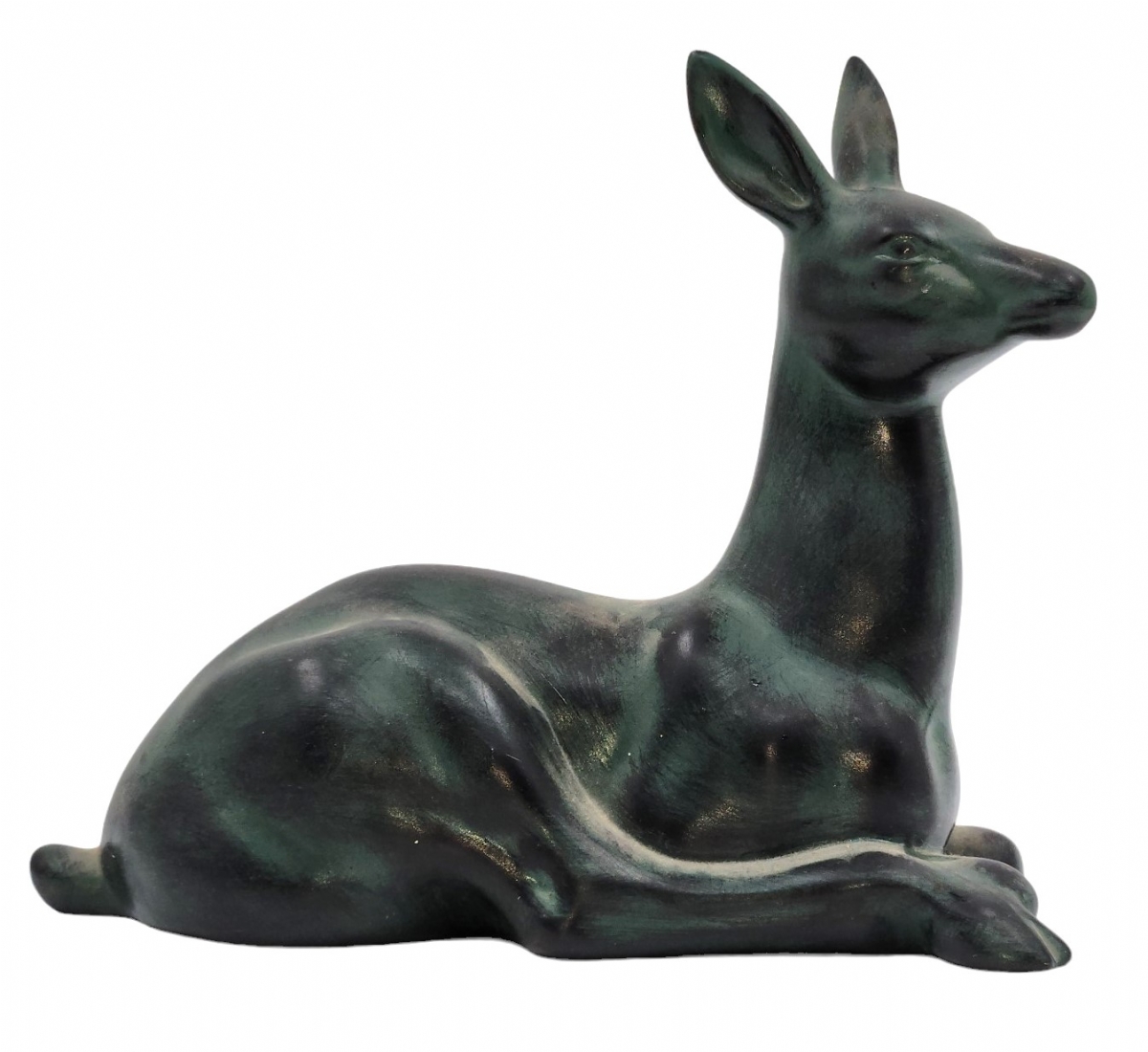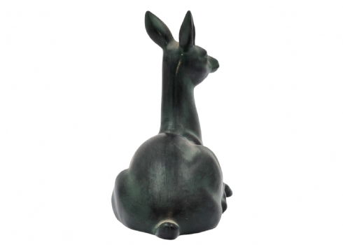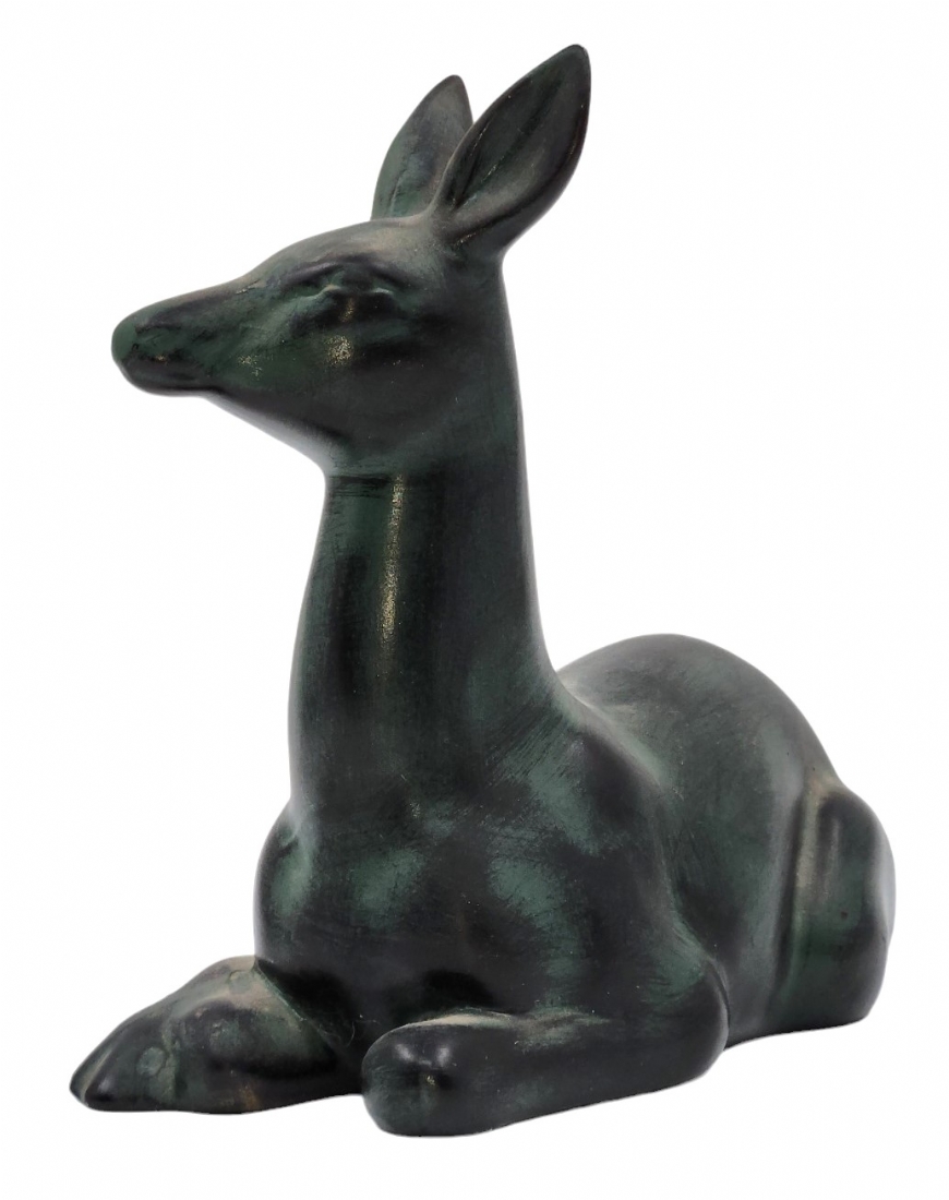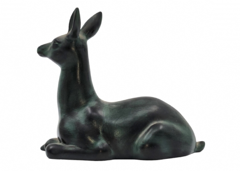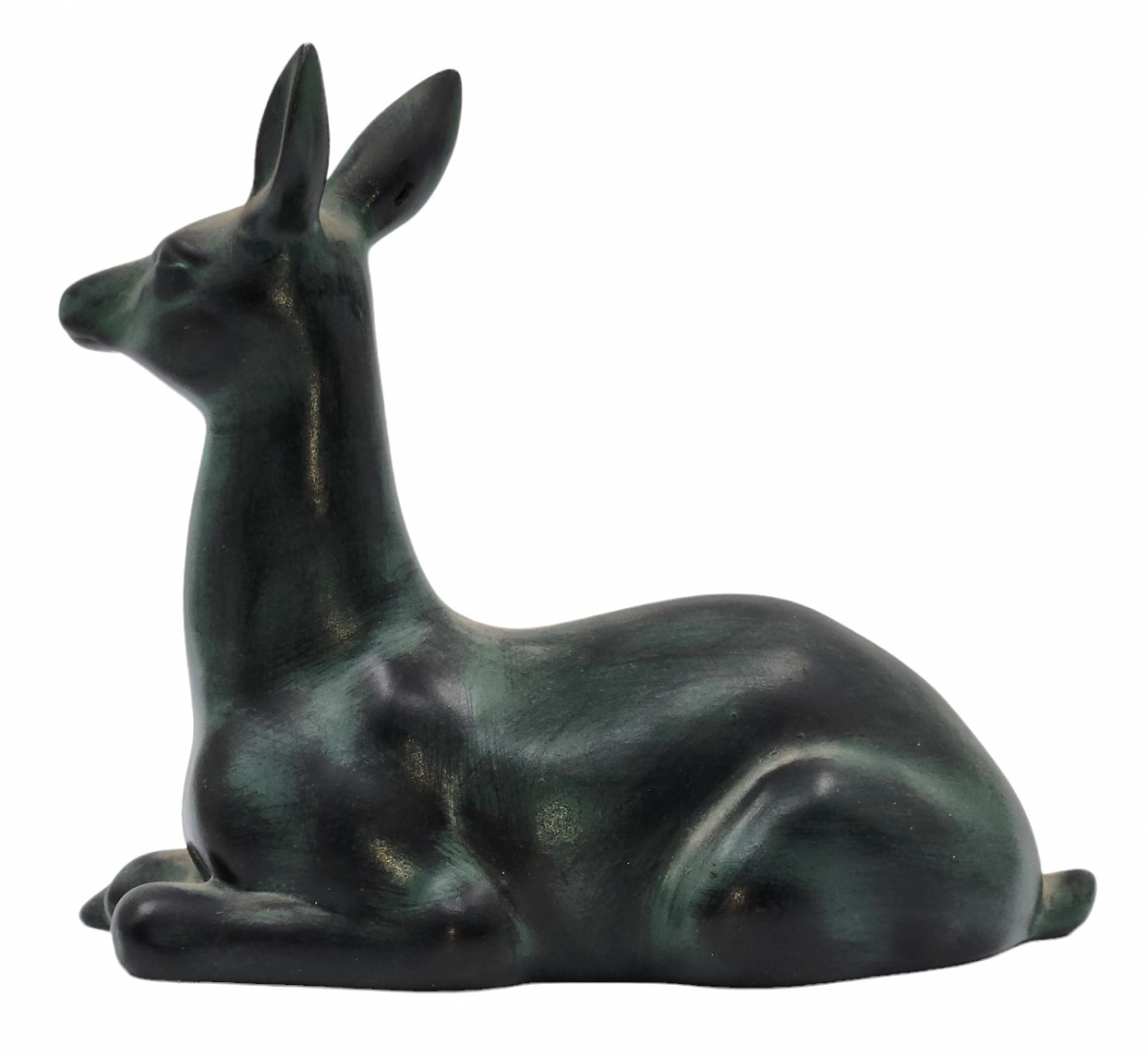 בדמות איילה יושבת, תוצרת הסטודיו לקדרות ואומנות 'D. Dinis', מעוטרת בצביעת יד בגוון ירוק, חתום.