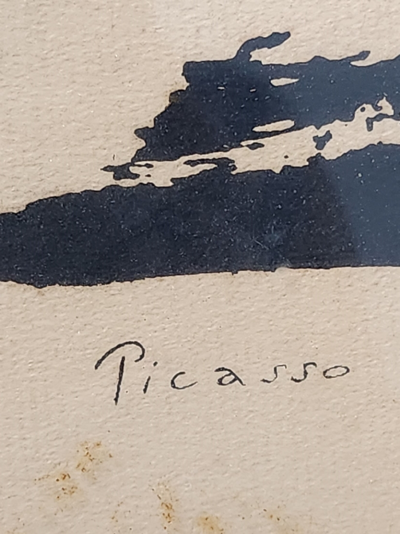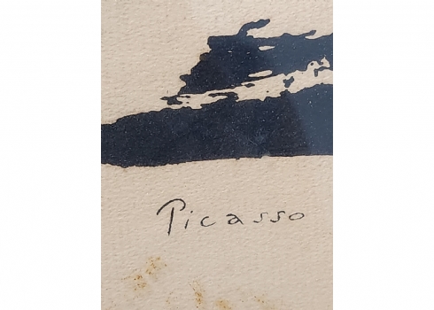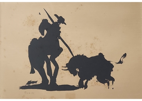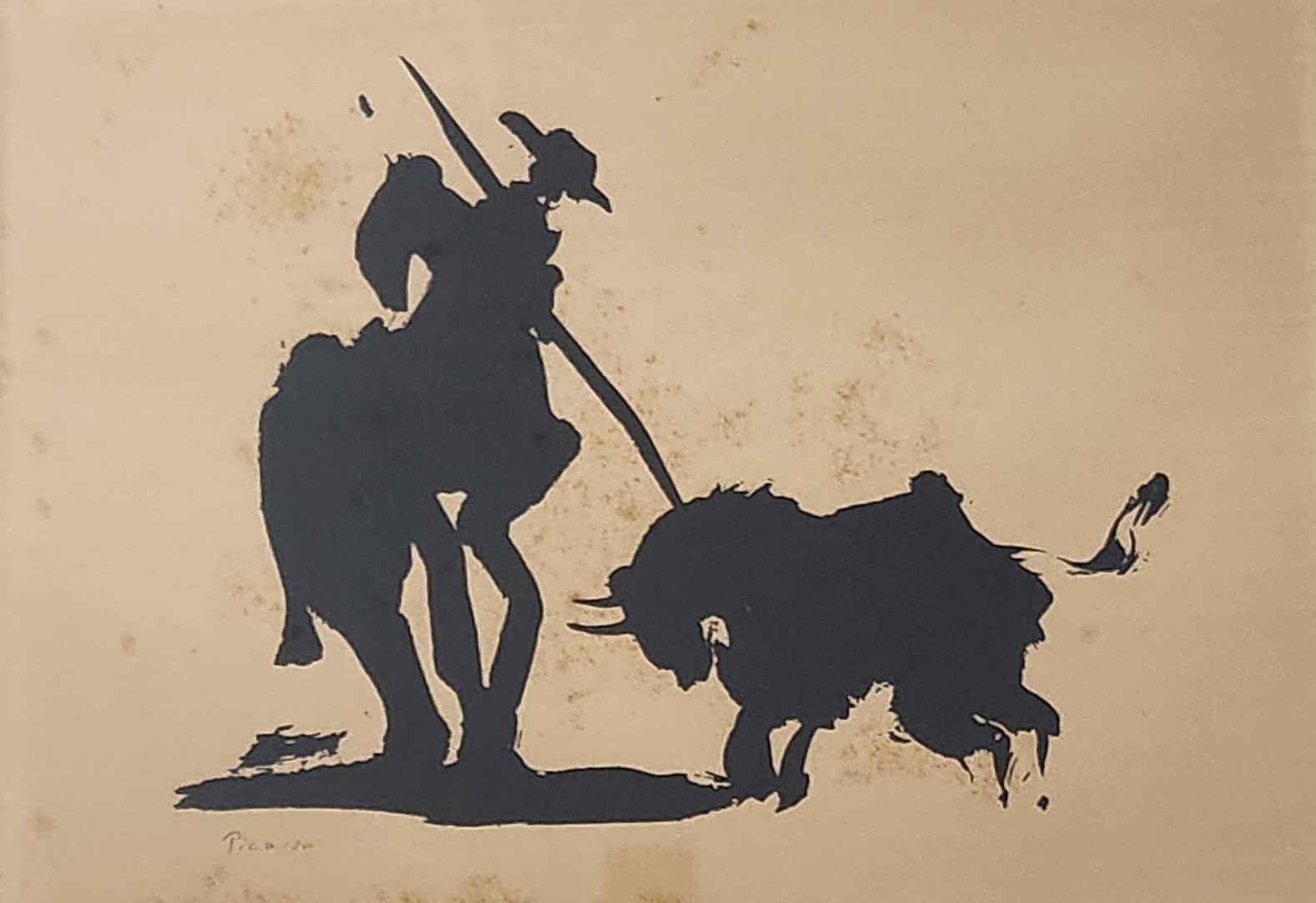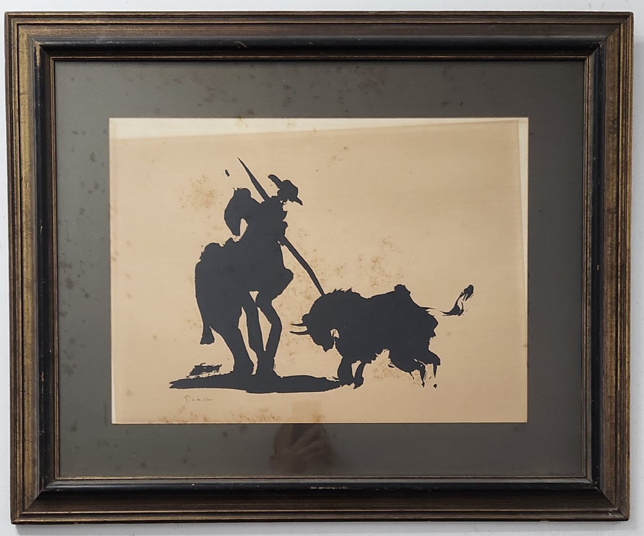 פבלו פיקאסו - 'מלחמת שוורים 2', ליטוגרפיה מסדרת הציורים 'מלחמת שוורים', חתומה בפלטה, 40.5X56 ס"מ, מידות המסגרת: 67X83 ס"מ.