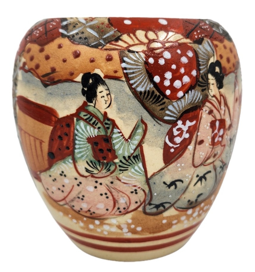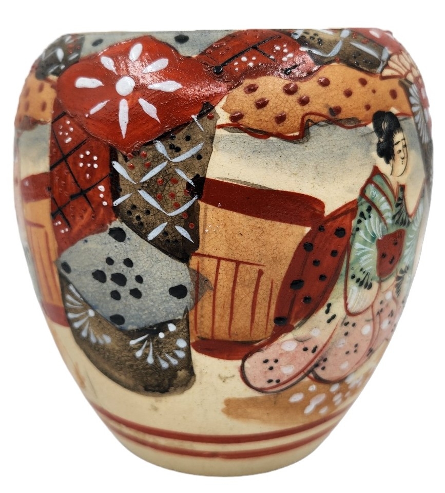 לוט של 5 כלי פורצלן וקרמיקה שונים מהמזרח הרחוק, הכולל ארבעה כדים וקערה, רובם חתומים, קוטר הקערה: 15.5 ס"מ, גובה הכד הגדול: 13 ס"מ, רוחב: 13.5 ס"מ.