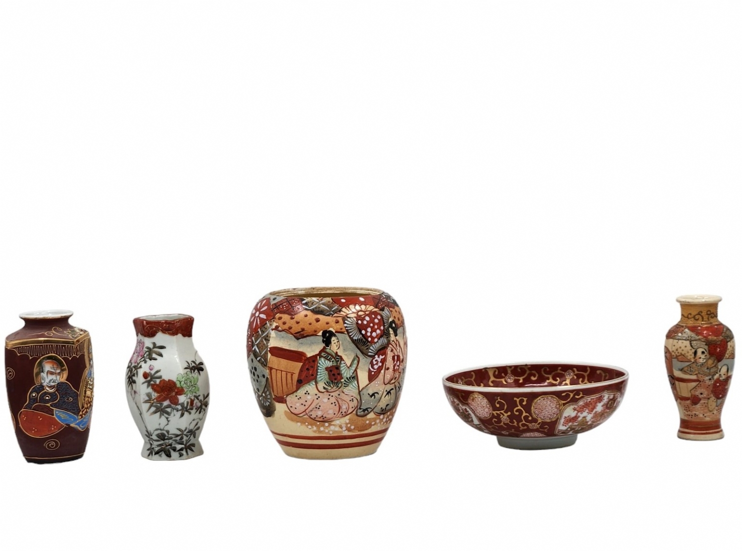 לוט של 5 כלי פורצלן וקרמיקה שונים מהמזרח הרחוק