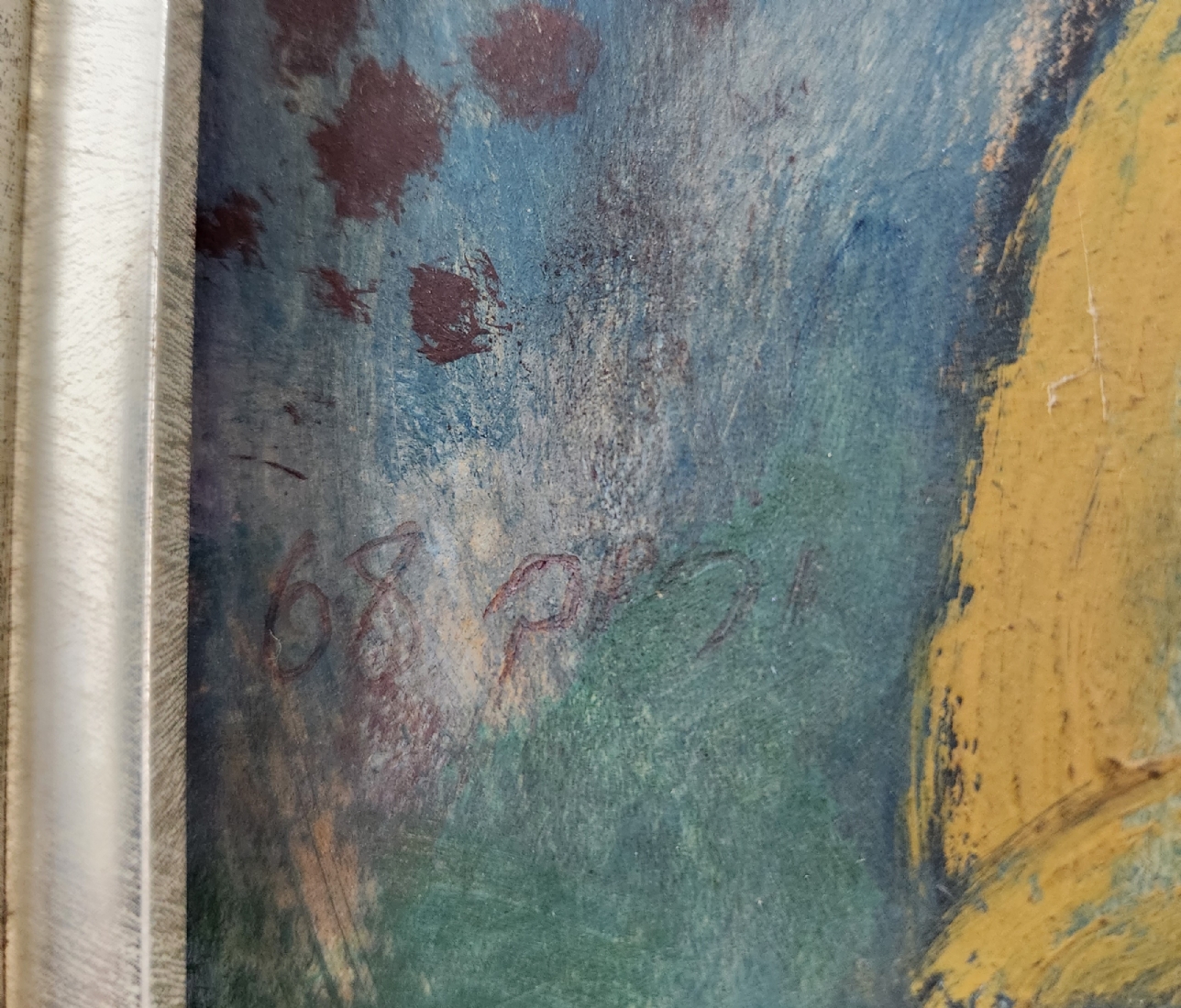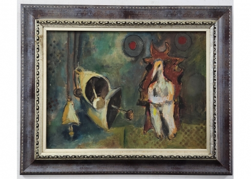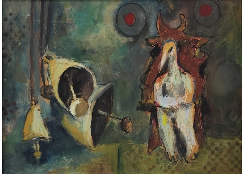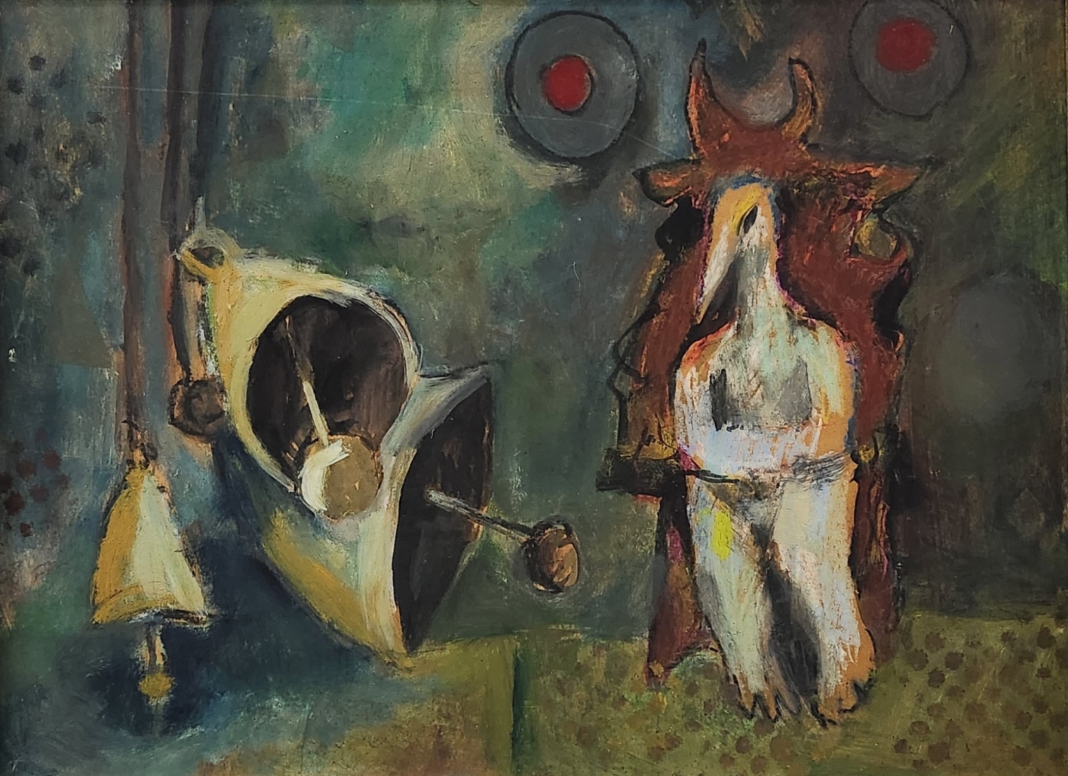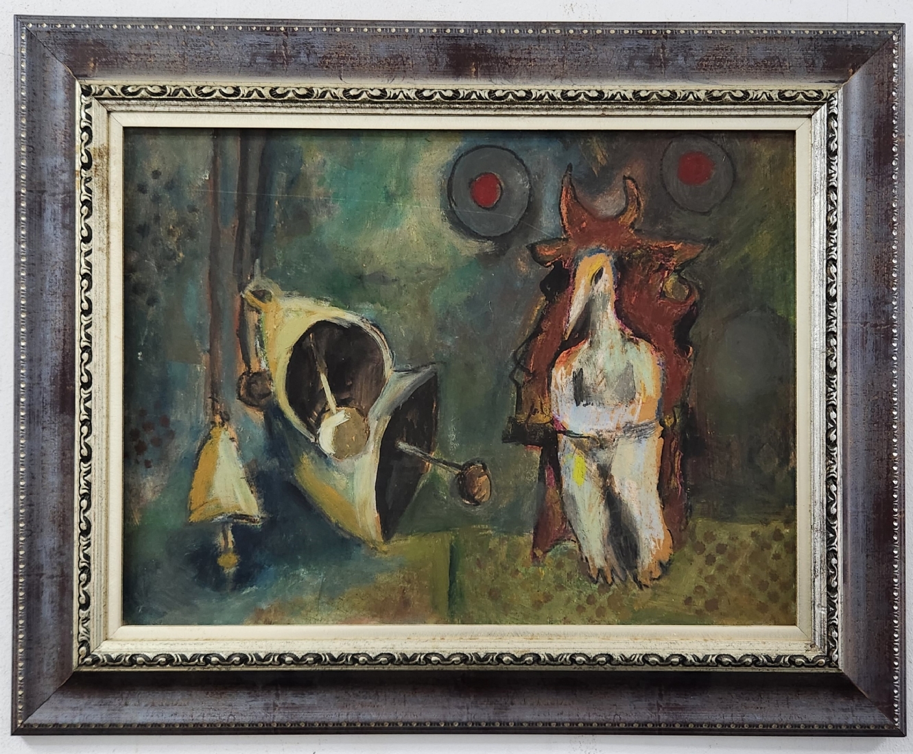 'שד פעמונים' - שמן על לוח, חתום ומתוארך: 1968, מידות: 33.5X45.5 ס"מ, מידות המסגר: 49.5X61 ס"מ.