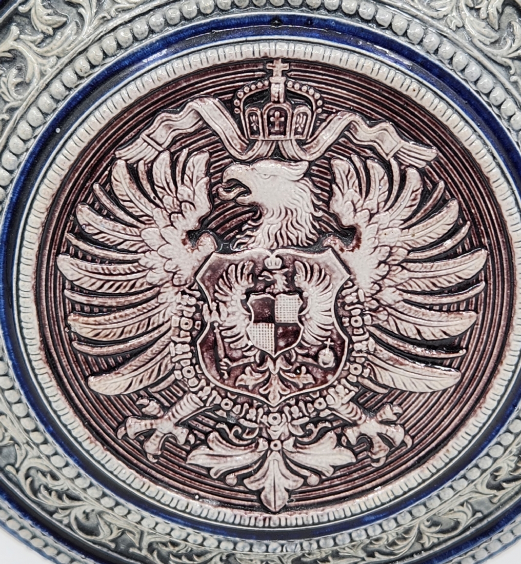 אגרטל גרמני, מתוצרת: 'Merkelbach & Wick', עשוי חרס מעוטר בזיגוג מלח (Salt-glaze)