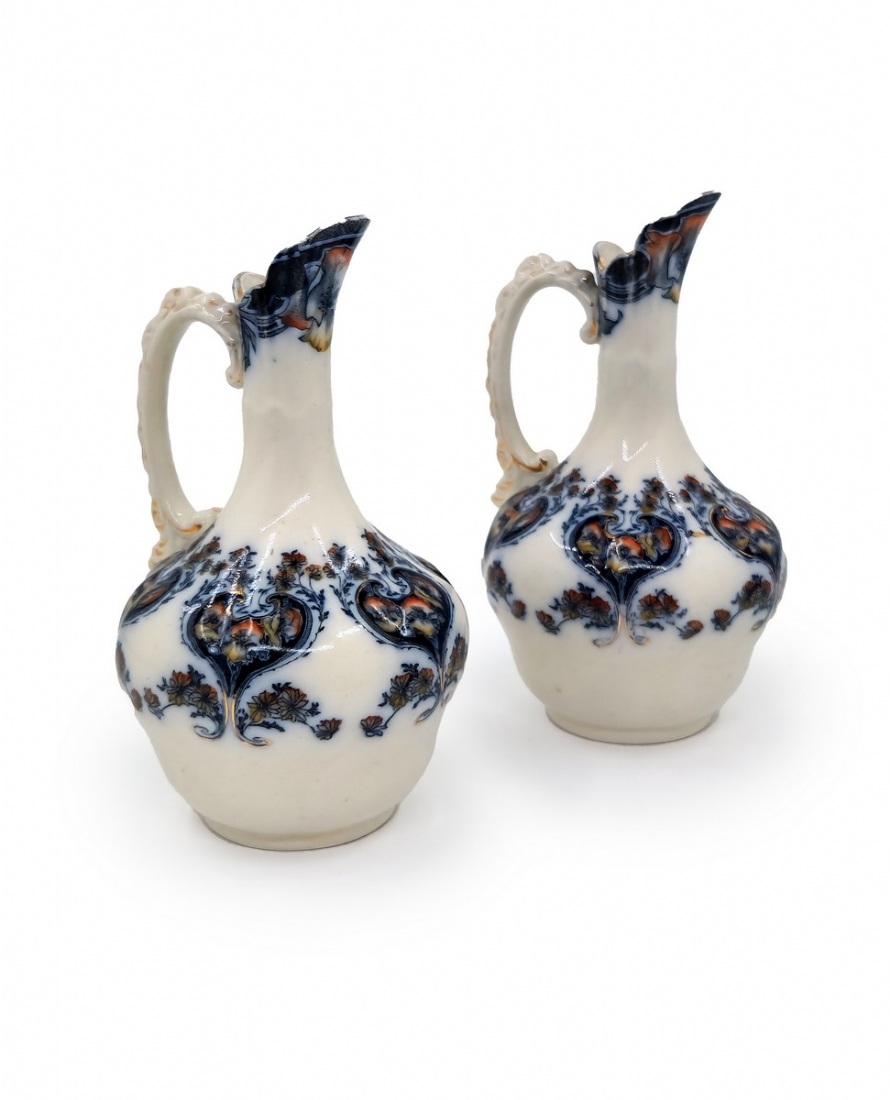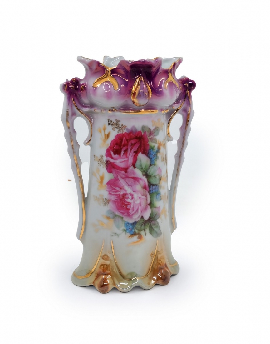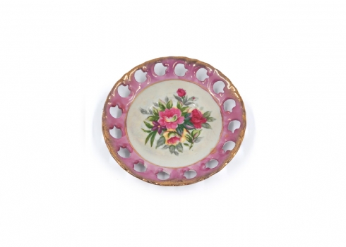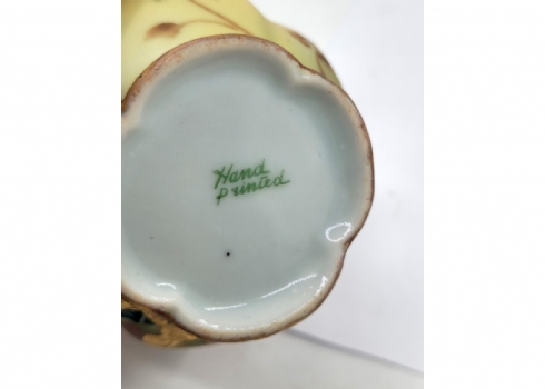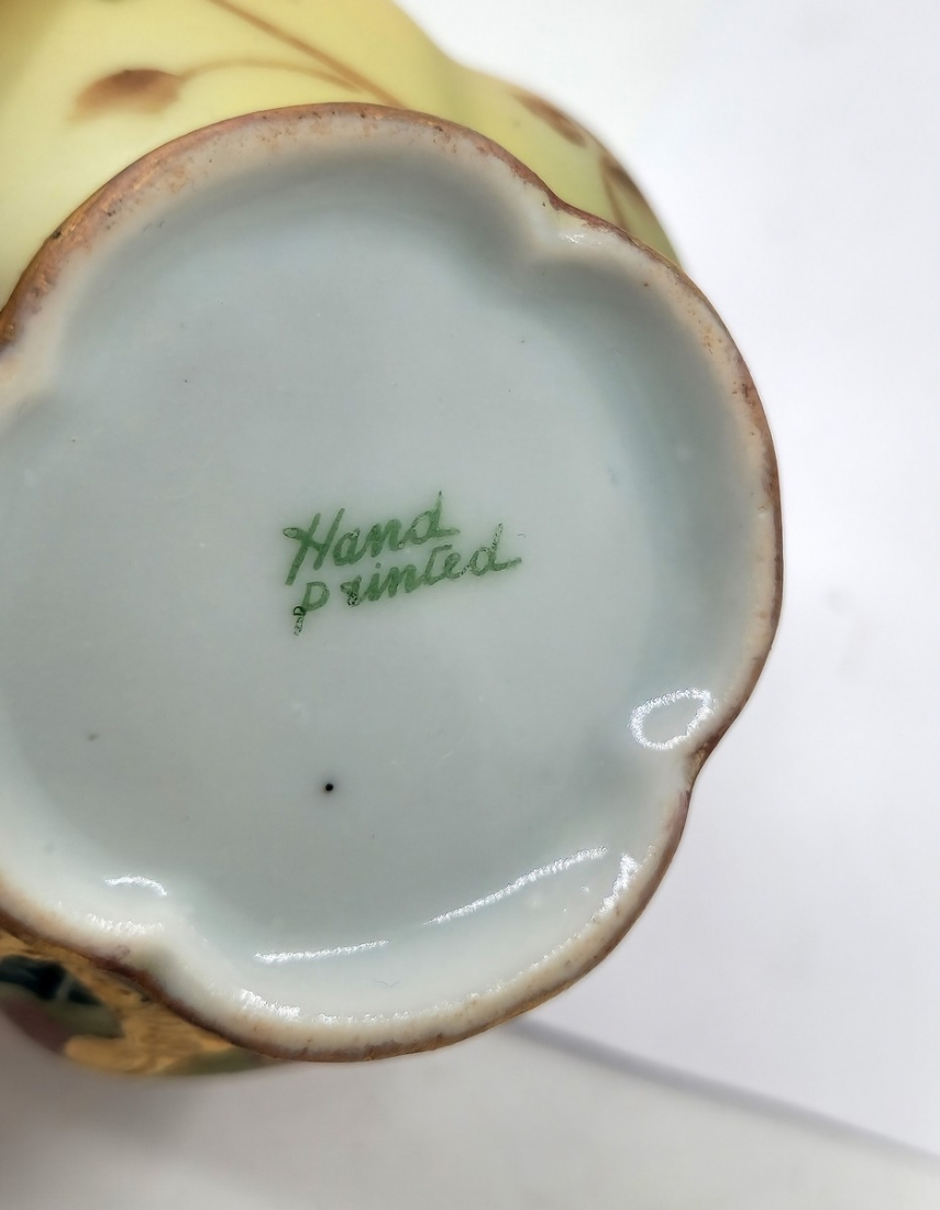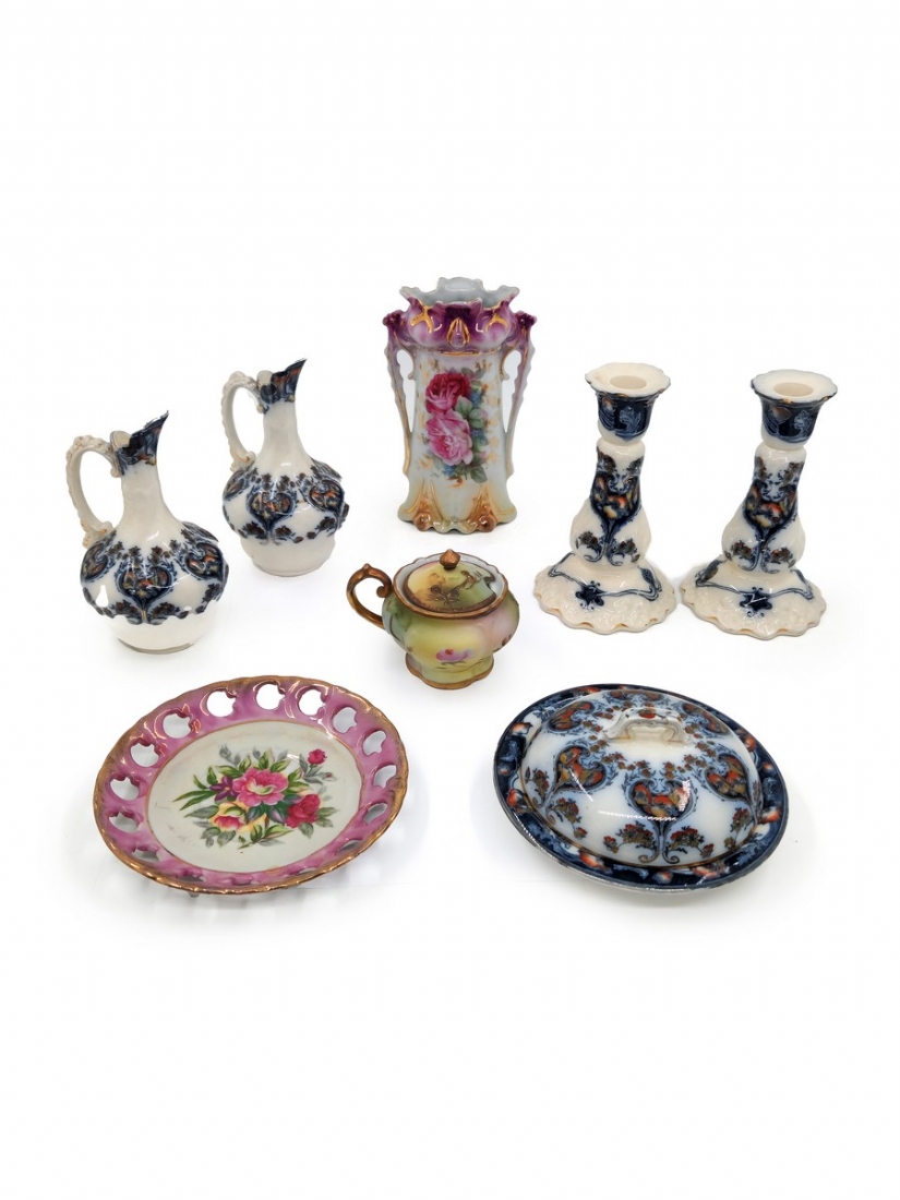 לוט של 8 כלי פורצלן שונים, מעוטרים בהדפסים וצביעה בעבודת יד (צ'יפ קטן לשפת הפמוט), רובם חתומים