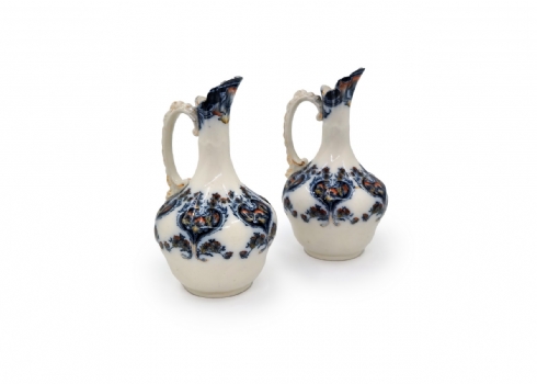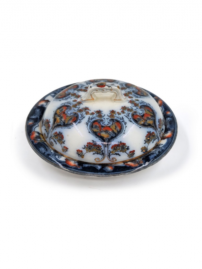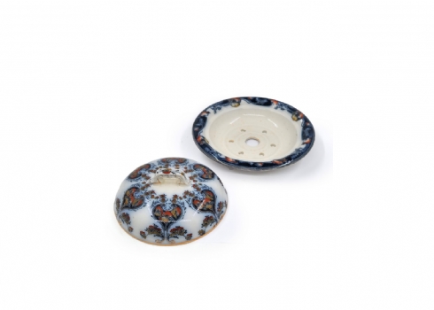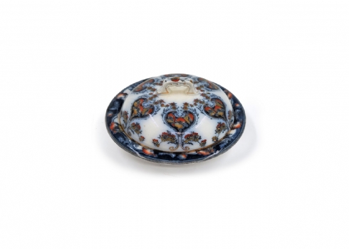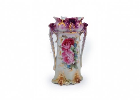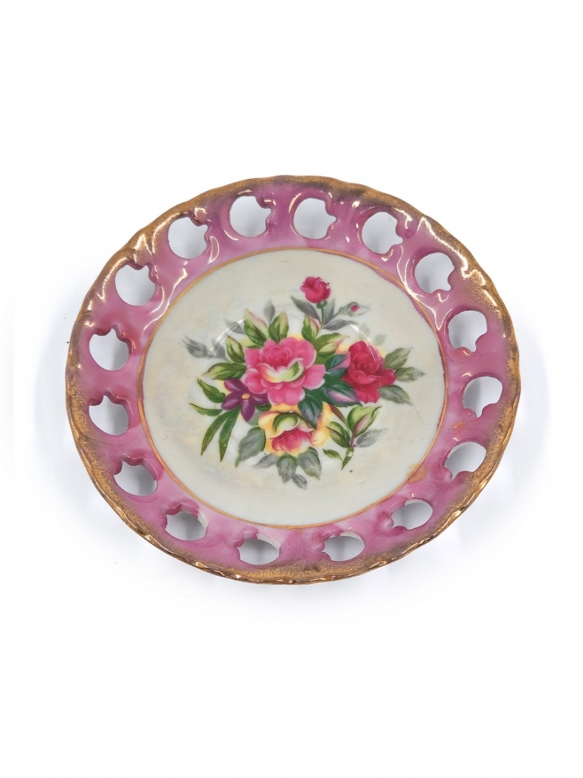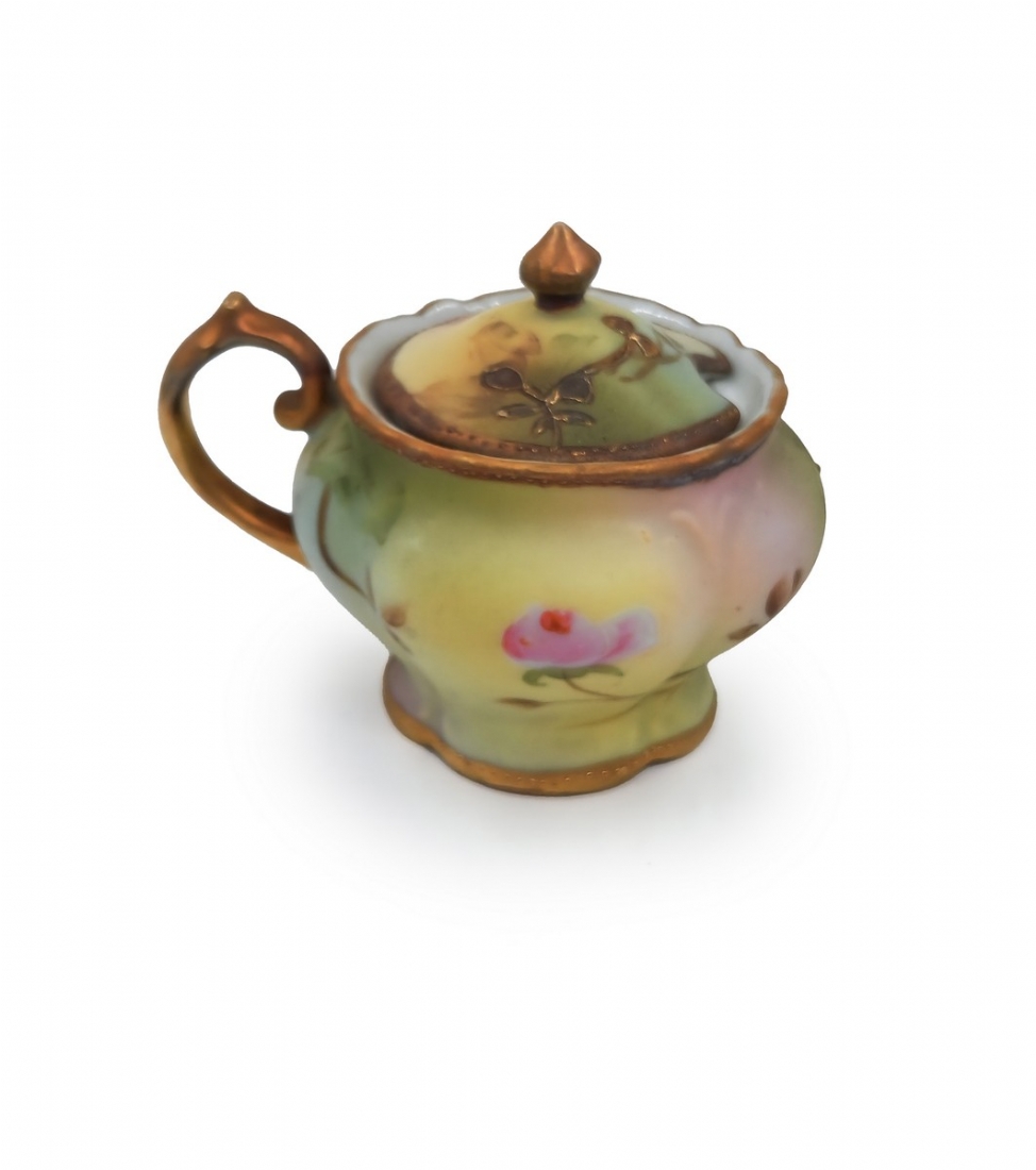 לוט של 8 כלי פורצלן שונים, מעוטרים בהדפסים וצביעה בעבודת יד (צ'יפ קטן לשפת הפמוט), רובם חתומים