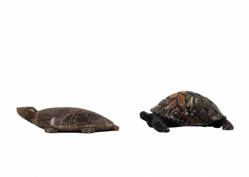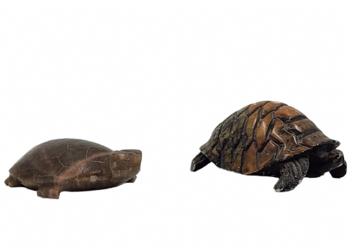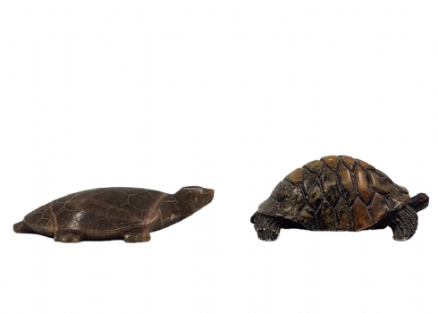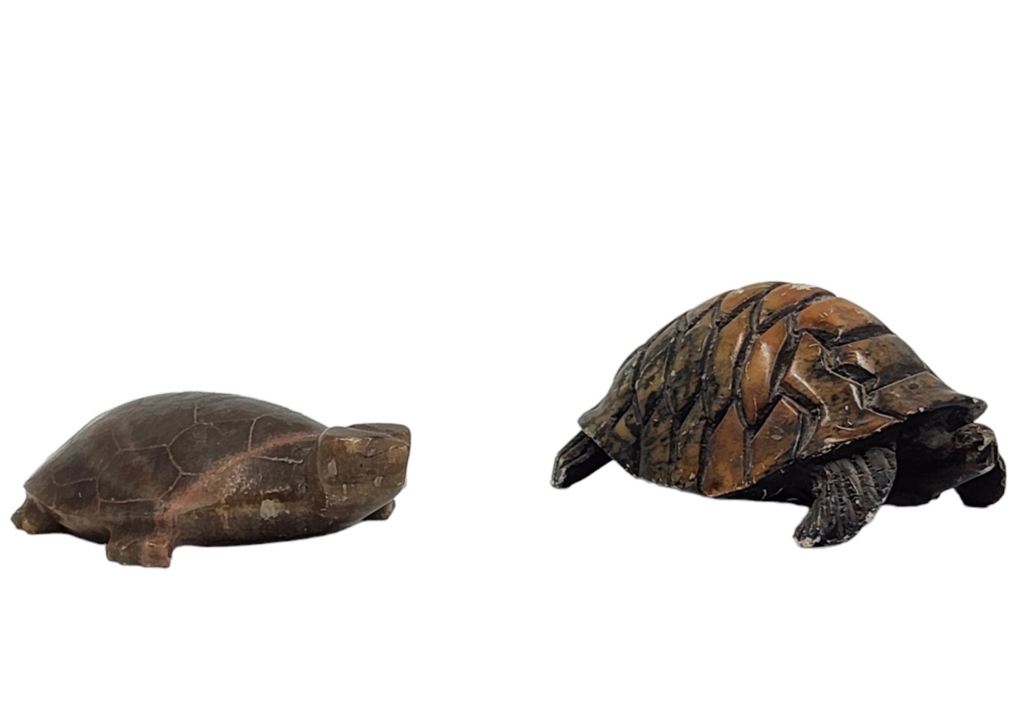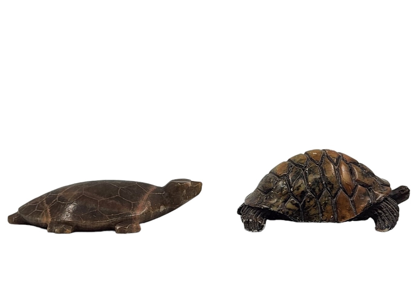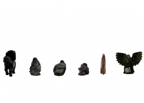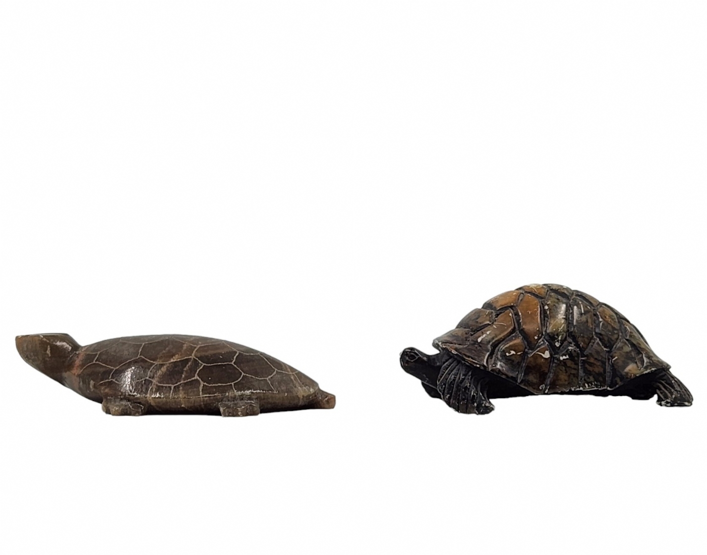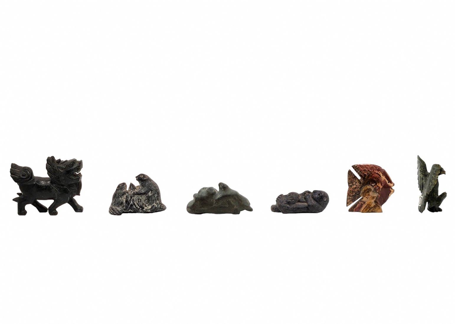 לוט של 8 פיסלונים קישוטיים, בדמות חיות, עשויים אבן טבעית, מגולפים, בין היתר אוניקס וספרנטיין, מספר חוסרים, אורך הצב הגדול: 15 ס"מ, גובה הכלב שישי: 9 ס"מ, אורך כלבי הים: 10 ס"מ, גובה הדג: 8 ס"מ.