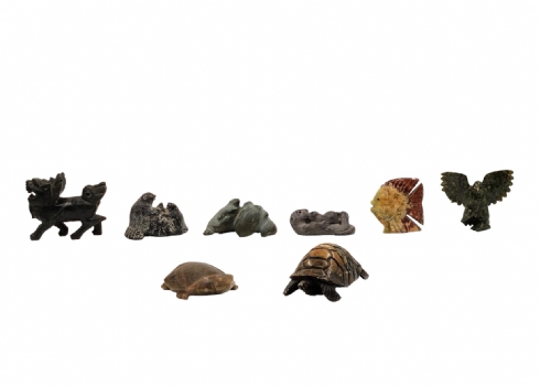לוט של 8 פיסלונים קישוטיים, בדמות חיות, עשויים אבן טבעית