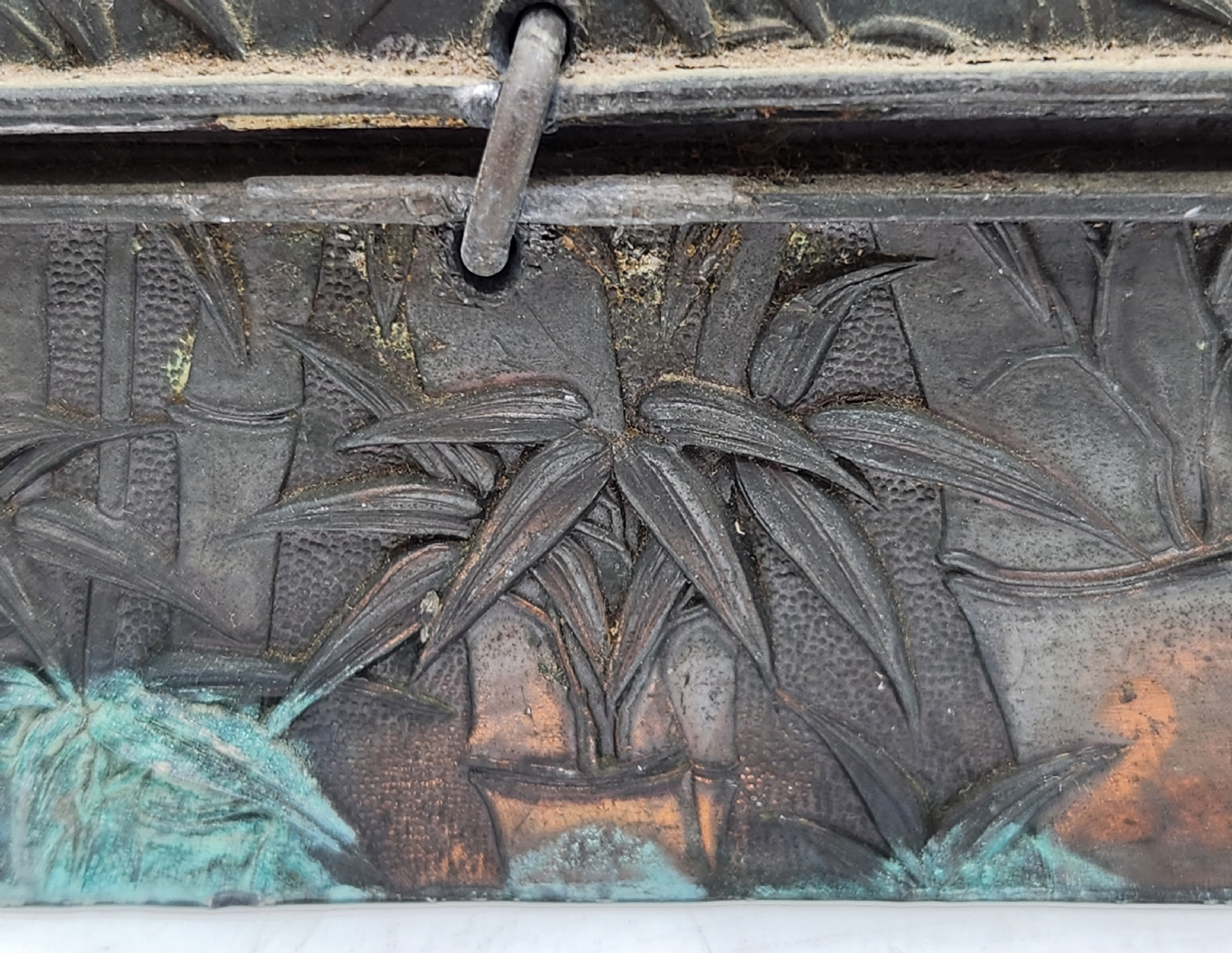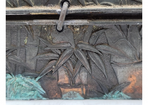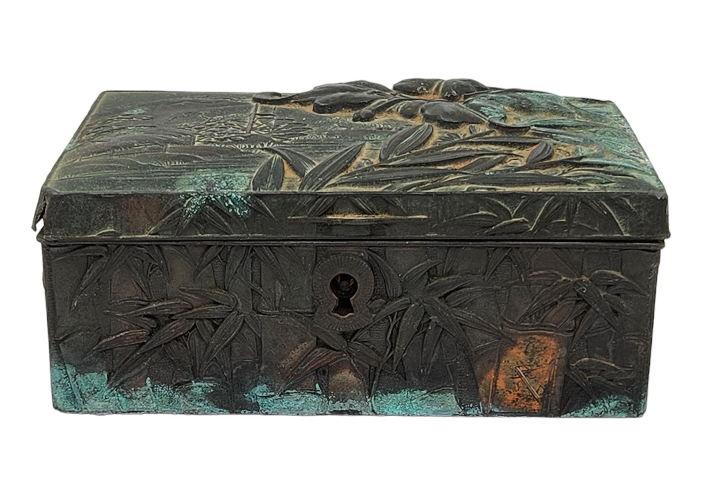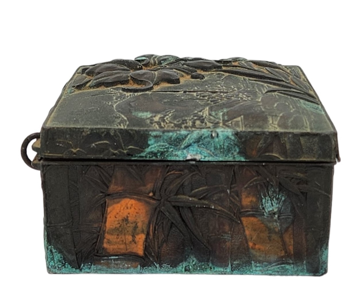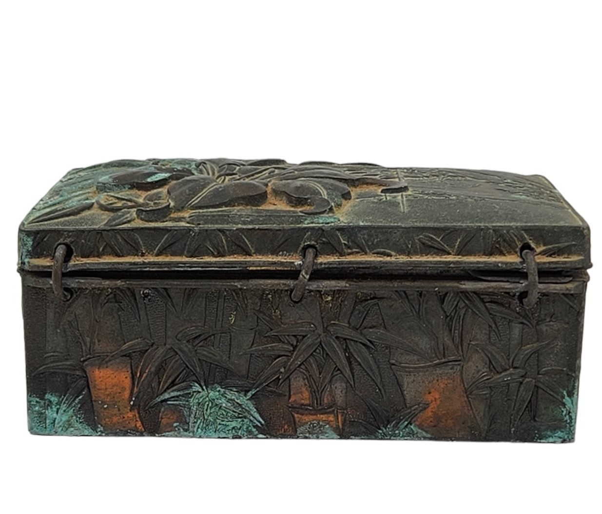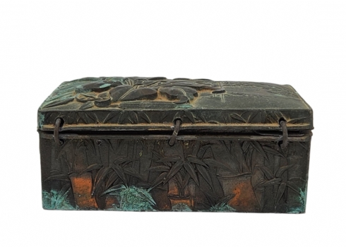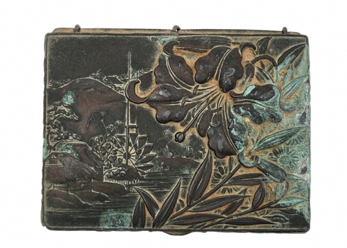 עשויה פיוטר מצופה בנחושת, חיפוי פנימי עשוי בד, חתומה1900-1910 בקירובגובה: 6 ס"מ, מידות הבסיס: 9.5X12.5 ס"מפגמים וסימני קורוזיה