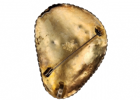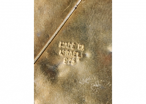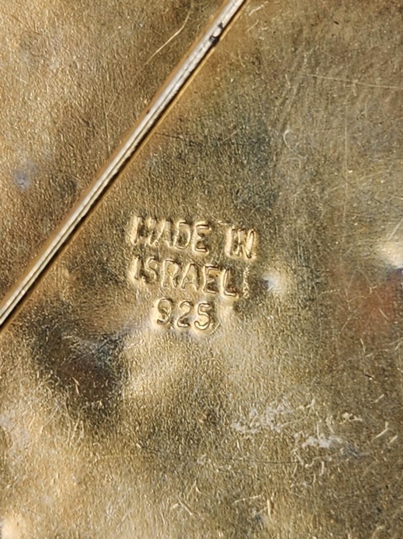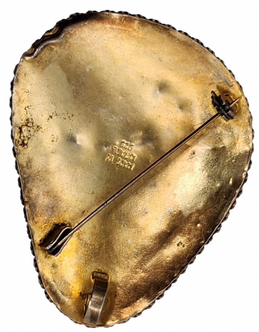סיכה ישראלית גדולה עשויה כסף 'סטרלינג' (925) מוזהב, חתום, משובץ אבן אילת טבעית