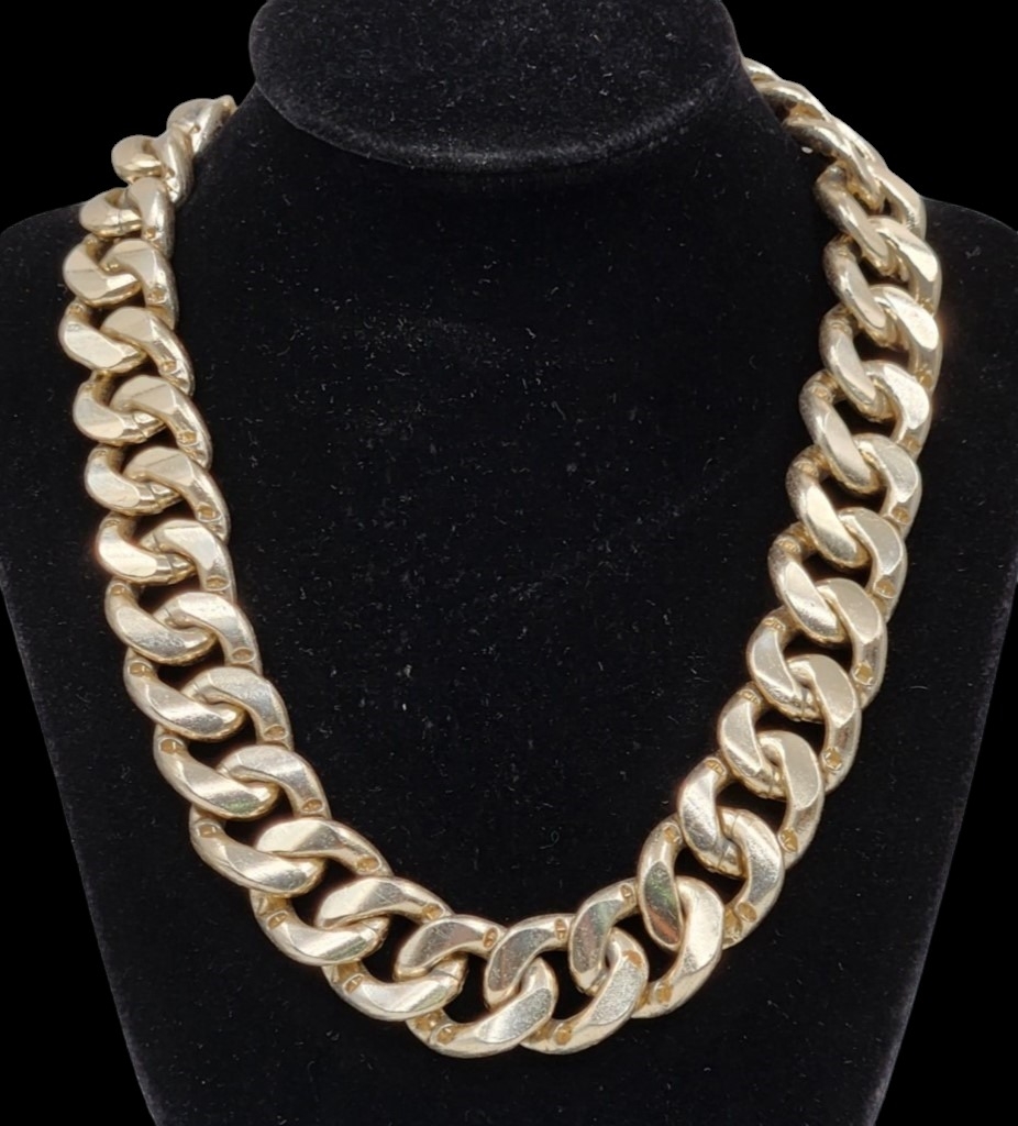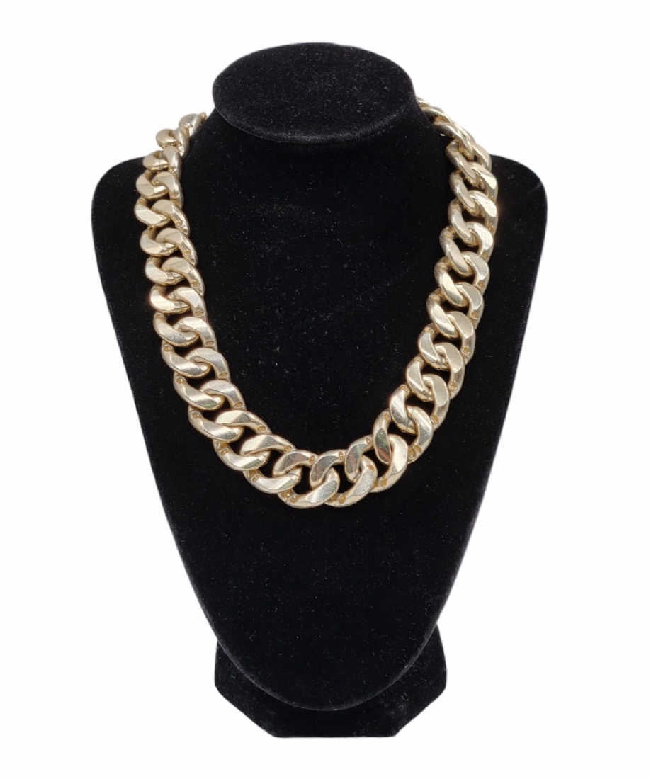 ענק כסף, הסוגר חתום '925' (כסף סטרלינג), טוהר הכסף של החוליות גם נבדק וגם הם עשויות כסף, רוחב חוליה: 2 ס"מ, אורך: 44 ס"מ, משקל: 80 גרם סה"כ.
