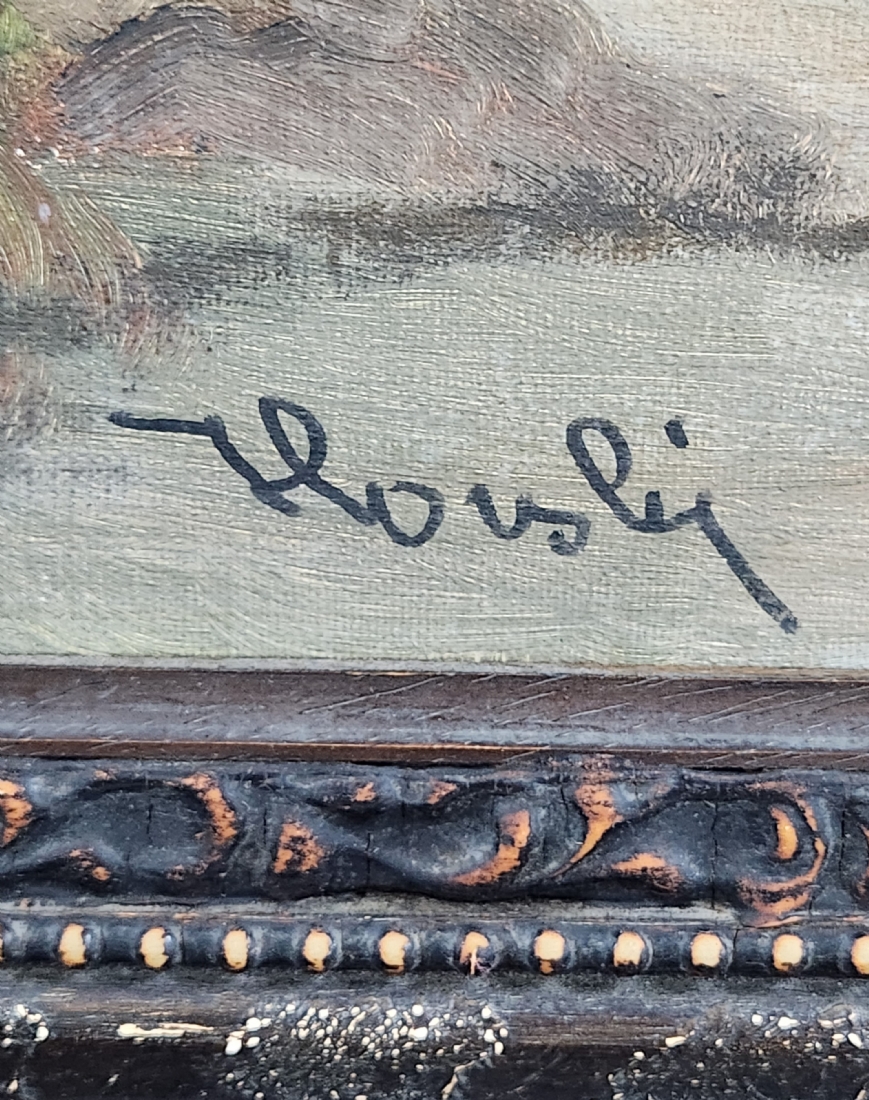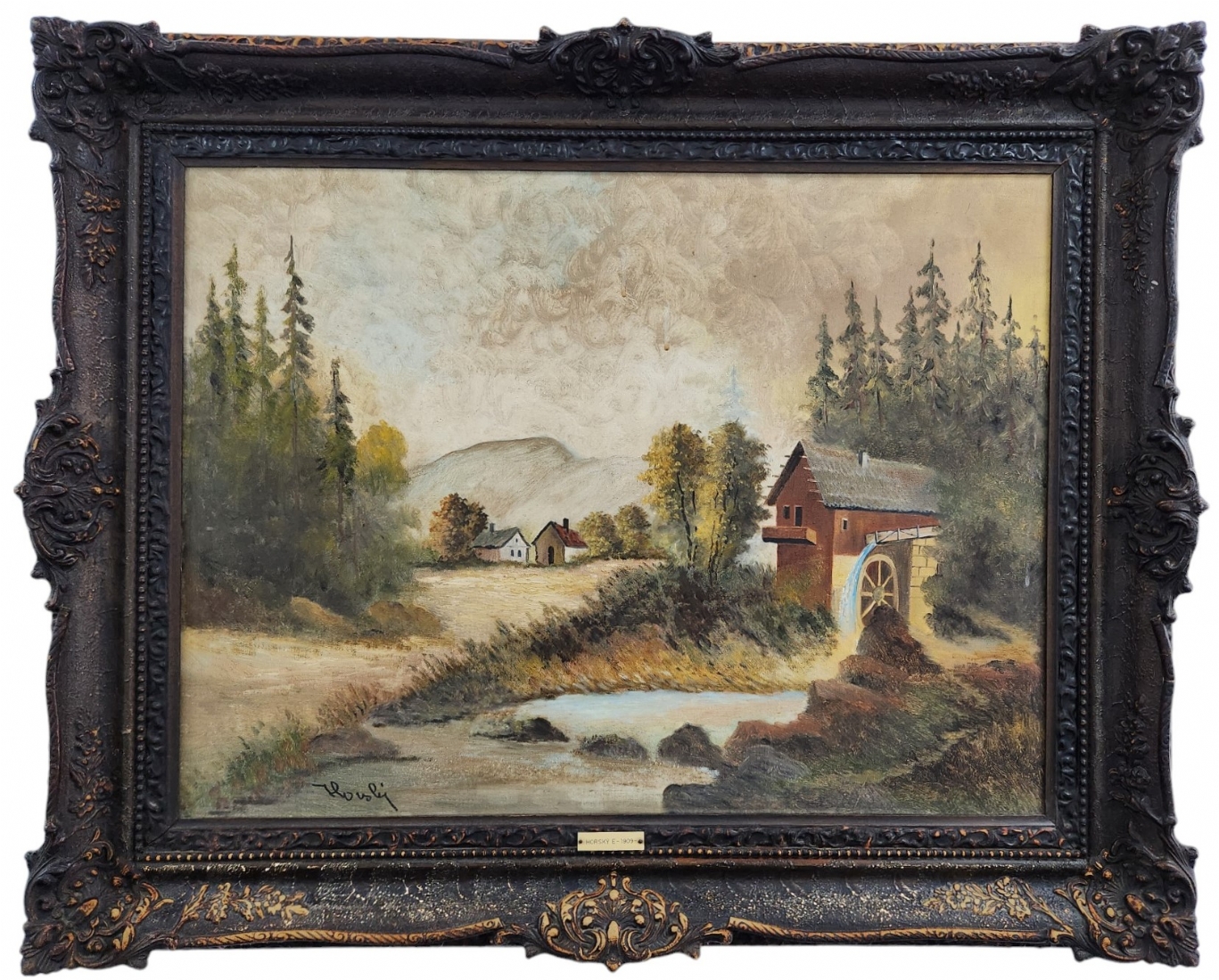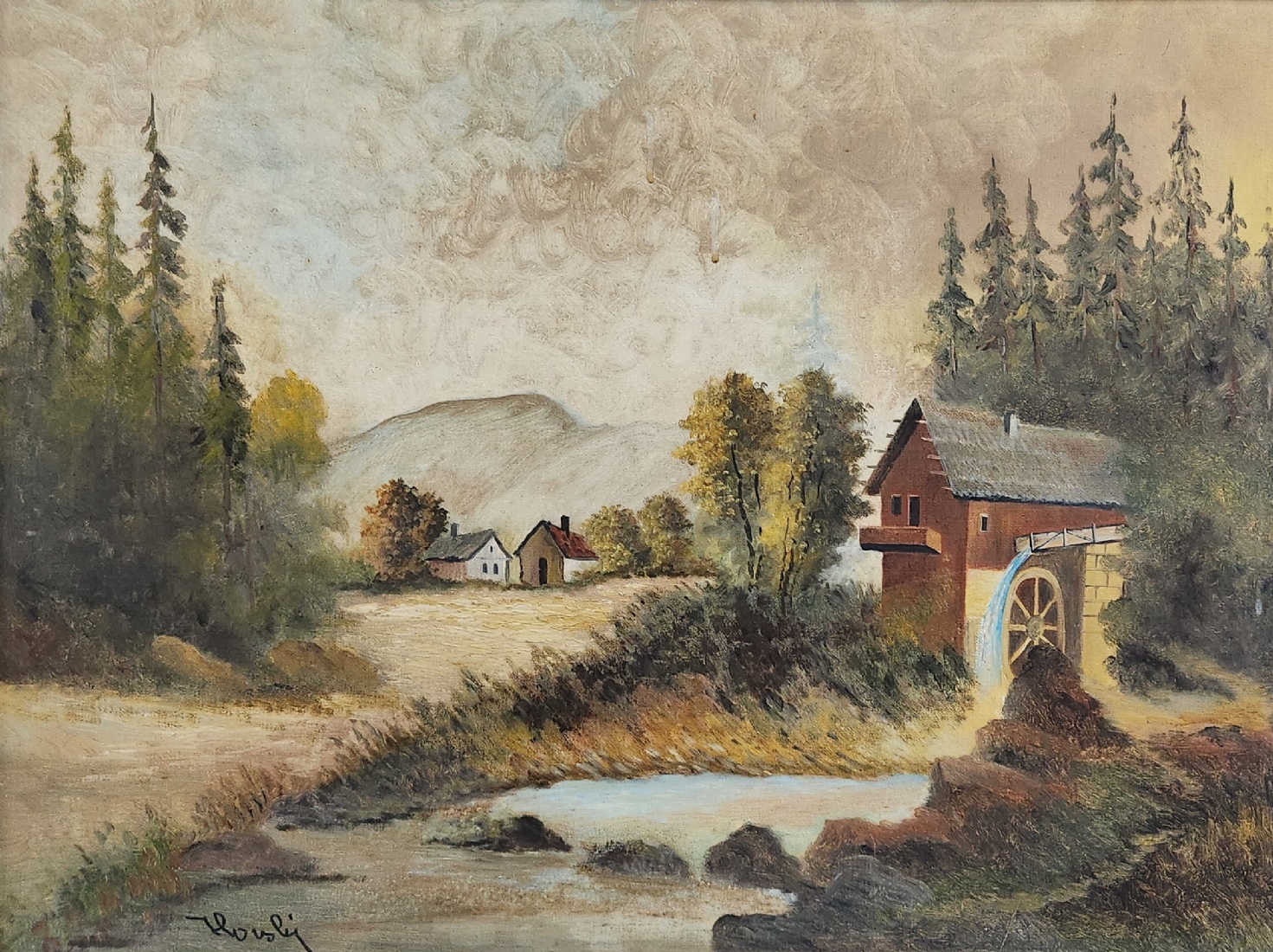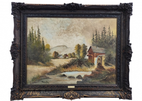 הלן הורסקי (Helene Horsky Basch) אמנית יהודית אוסטריה-ישראל, 1909-1982), 'טחנת קמח', שמן על בד, חתום, מידות: 60X80 ס"מ, מידות המסגרת: 83X103 ס"מ.