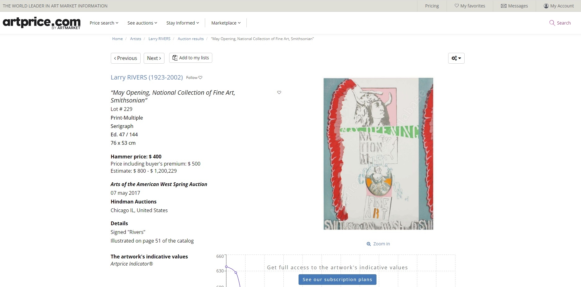 לארי ריברס (Larry Rivers) - ליטוגרפיה, כרזה צבעונית, מתוך האוסף הלאומי לאמנויות
