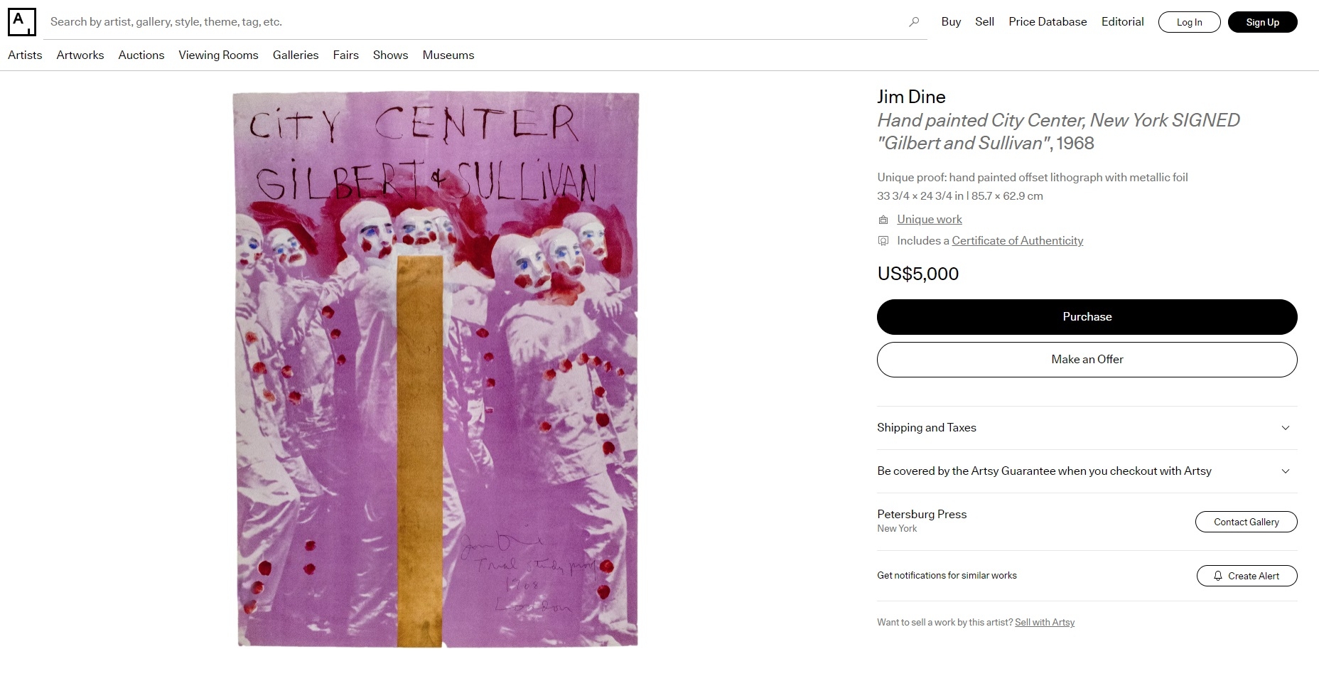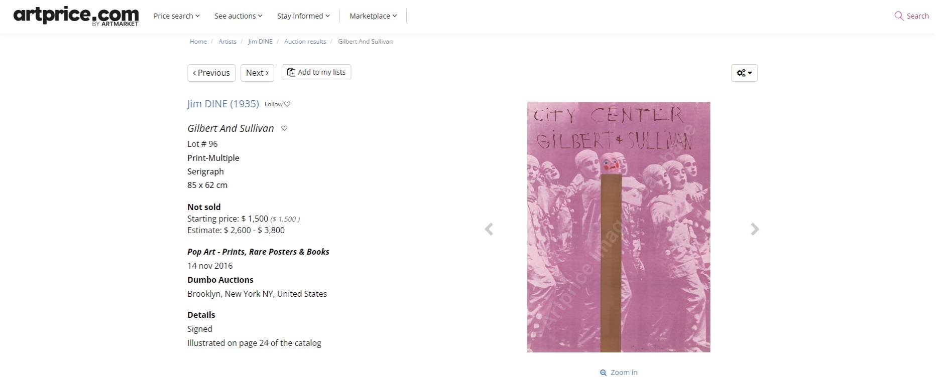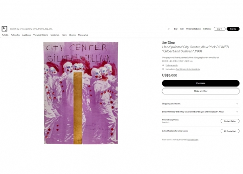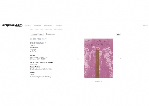 ג'ים דיין (Jim Dine) - 'Gilbert & Sullivan' - ליטוגרפיה, כרזה ('City Center'), חתומה בעיפרון, מתוארכת 1968 וממוספרת 116/144, ללא מסגרת, מידות: 88.5X63 ס"מ.