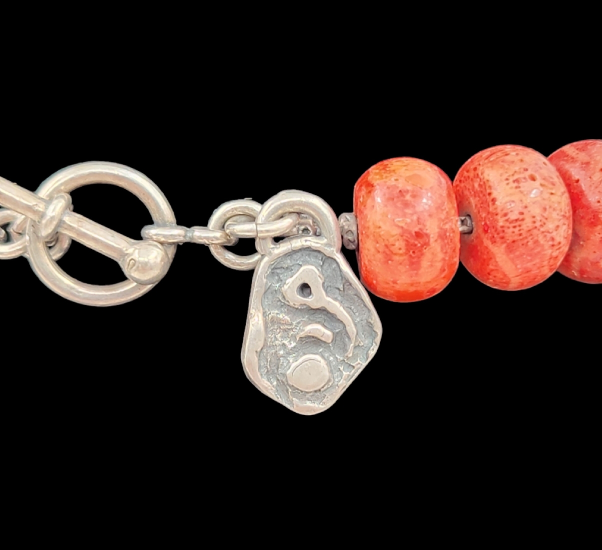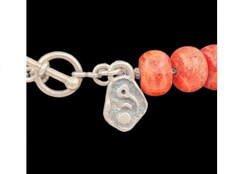מחרוזת עשויה חרוזי קורל וספייסרים עשויים כסף 'סטרלינג' (925) חתום