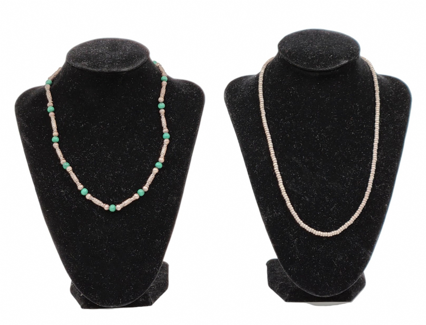לוט של 2 מחרוזות שזורות בחרוזי כסף סטרלינג (חתומות), אורך בהתאמה: 40, 48 ס"מ.