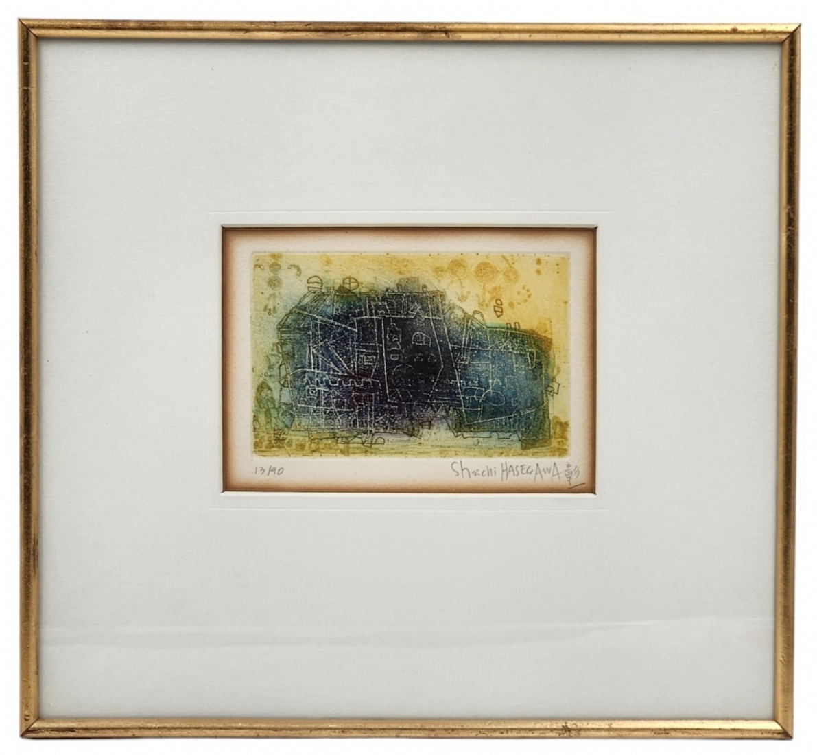 שוצ'י הסגאווה (1929, יפן ,Shoichi Hasegawa) - ליטוגרפיה חתומה בעיפרון וממוספרת 13/90 ס"מ, מידות: 9X14.5 ס"מ, מידות המסגרת: 33X36 ס"מ.
