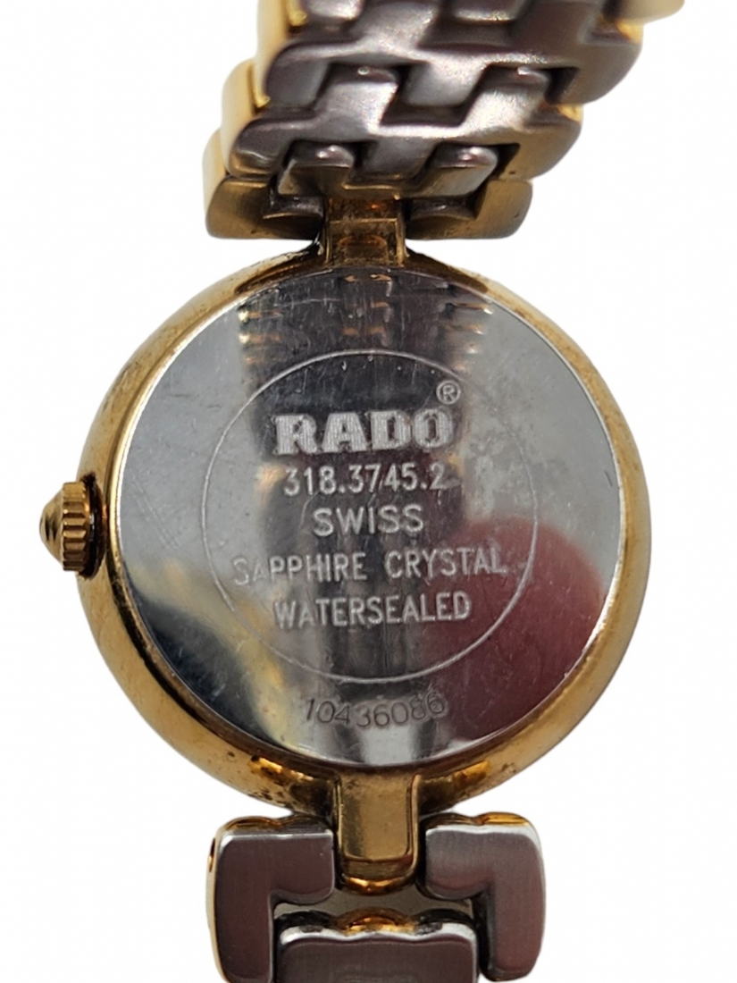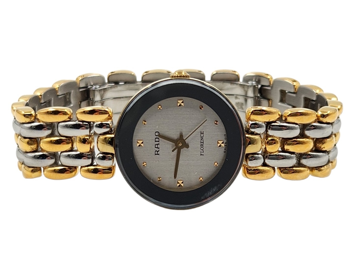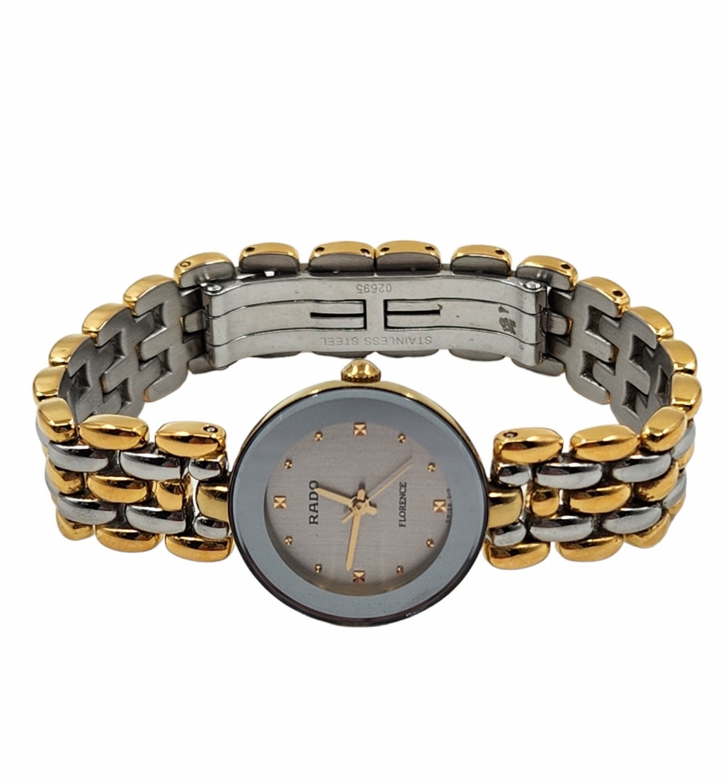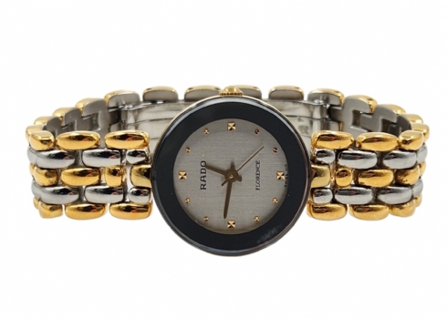 שעון יד לאישה מתוצרת ראדו (RADO), מודל 'Florence SS Gray Dial Two-Tone Women's Watch', קוטר: 23 מ"מ, מספר: 318.3745.2, לא נבדק מצב עבודה, עשוי פלדה, מוזהב בחלקו.